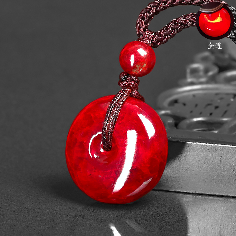 天然朱砂吊坠收藏原石打磨透光平安扣项链男女本命年马年宝宝挂件