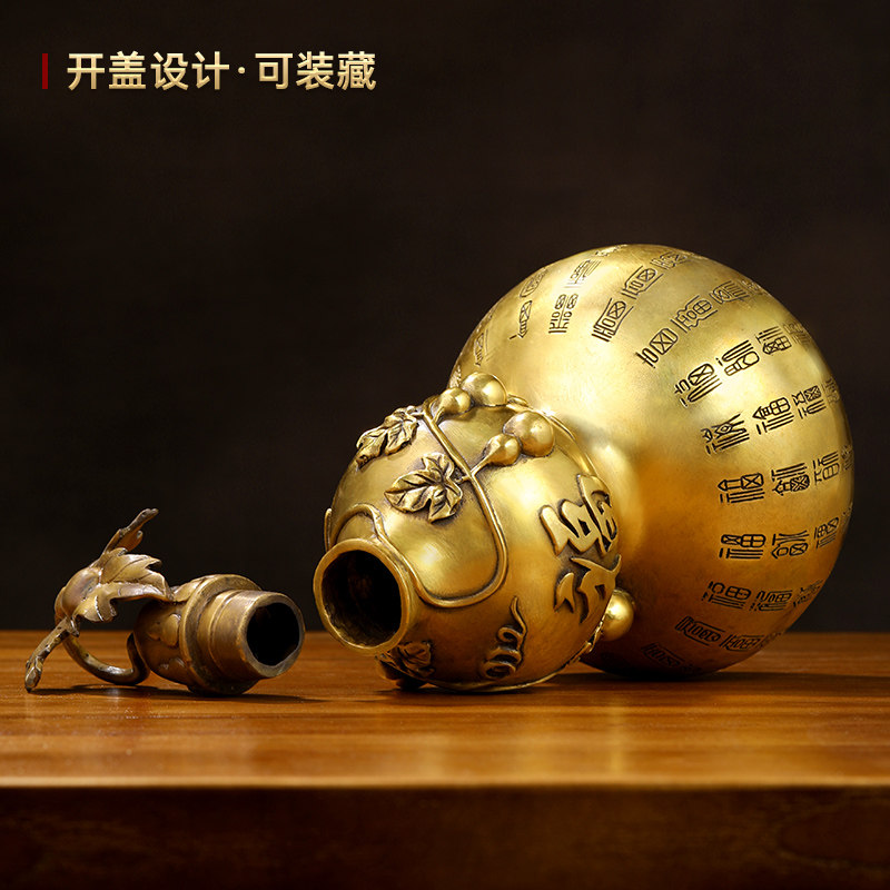 百福临门铜葫芦摆件大号全铜空心开口葫芦客厅家居玄关新家装饰品