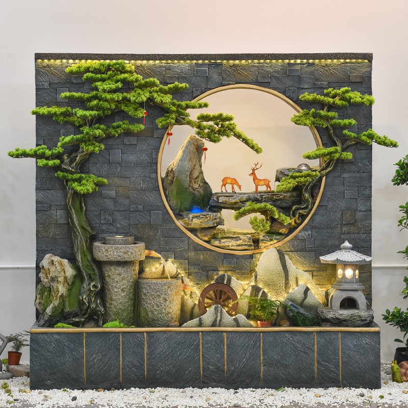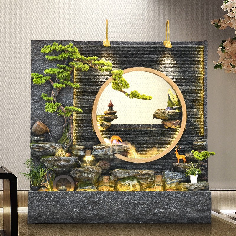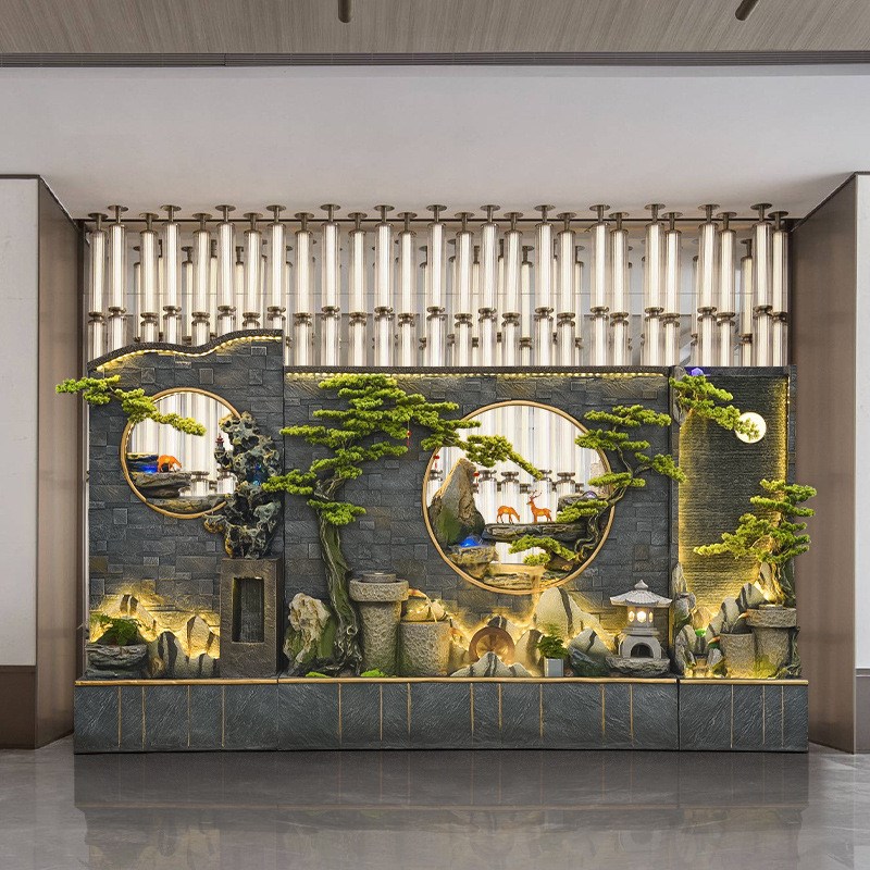 新款水幕墙假山流水喷泉屏风装饰庭院玄关景观摆R件客厅鱼池循环