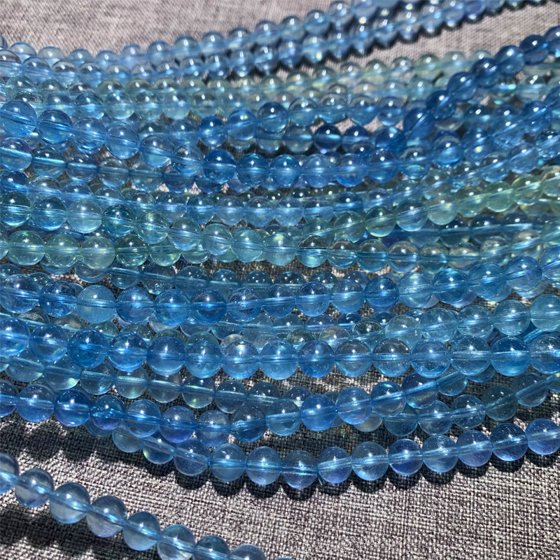 天然冰透海蓝宝三圈手链润蓝色水晶清透蓝饰品一物一图礼物男女款
