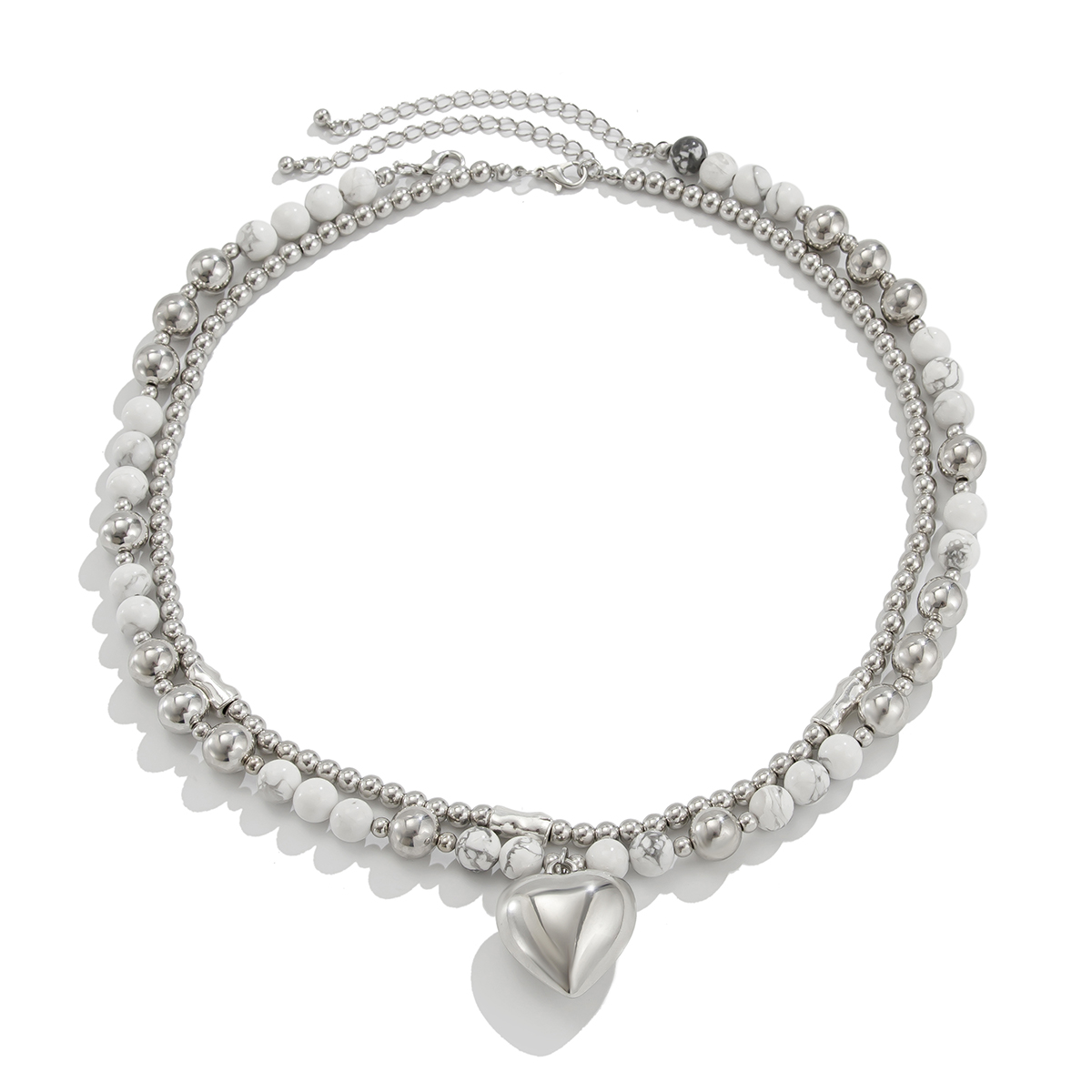 2件套桃心CCB仿松石珠子项链套装欧美新潮时尚网红气质叠戴锁骨链