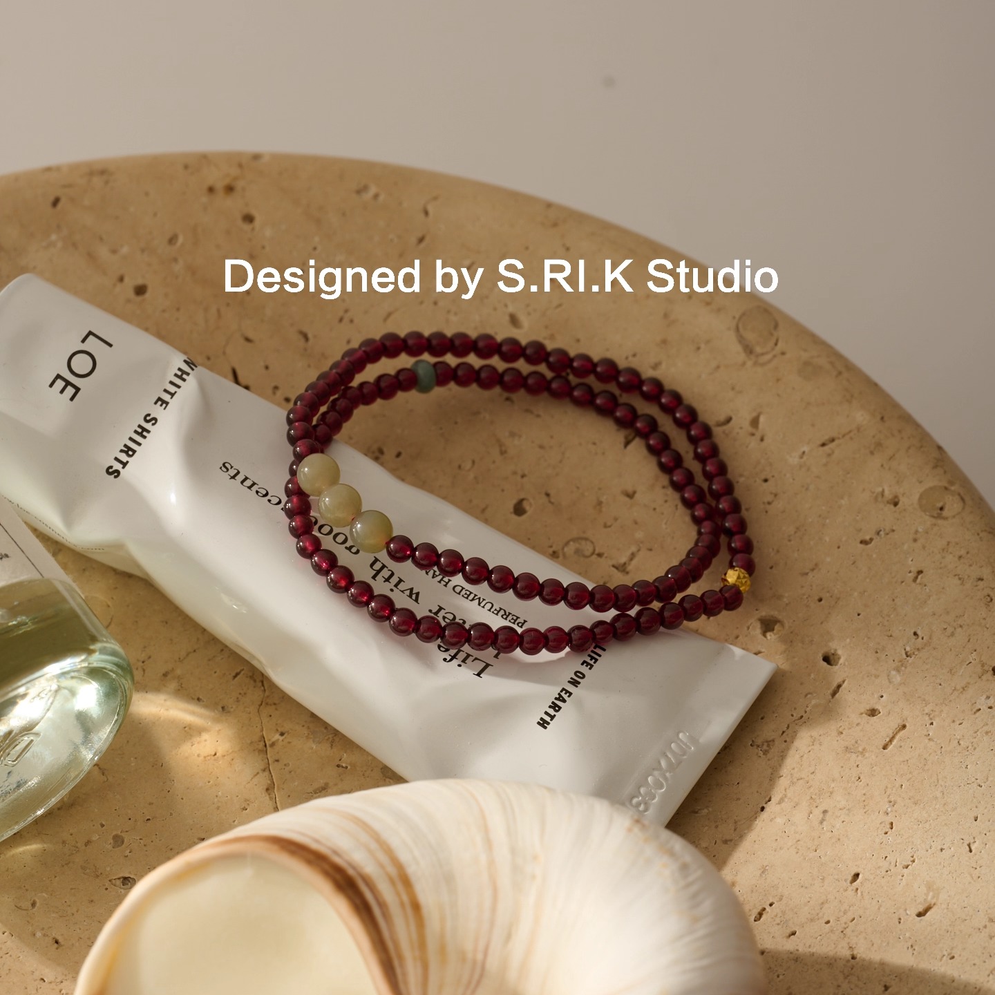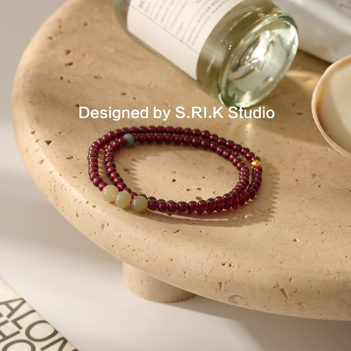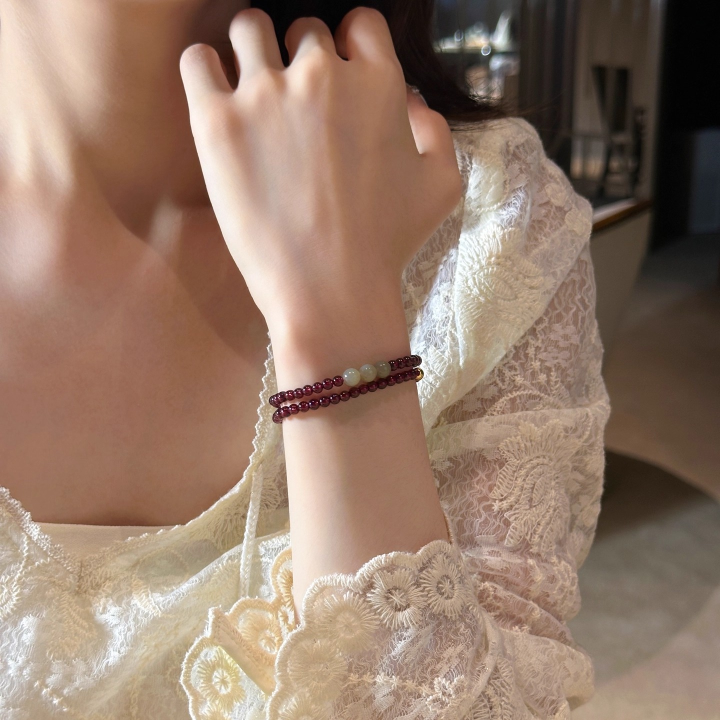十里间【石榴石】文艺小清新天然石和田玉手链百搭少女手串