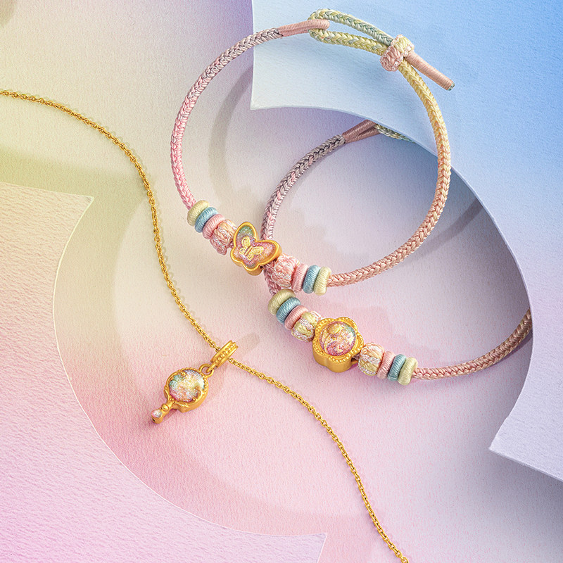 周六福黄金吊坠转运珠女定价5d硬金泡泡珐琅蝴蝶的魔镜送圣诞礼物