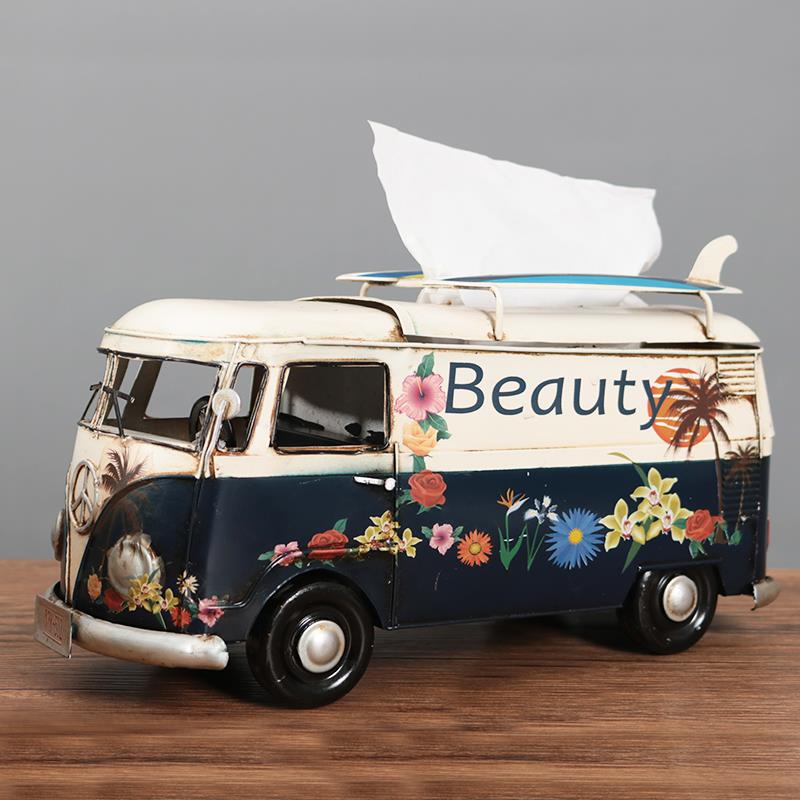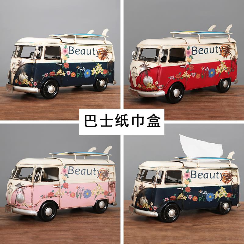 复古怀旧老爷车 汽车模型巴士纸巾盒抽纸盒 酒吧餐厅装饰道具摆件
