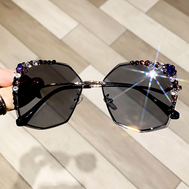 时尚新款水钻太阳镜防紫外线防辐射女士墨镜圆脸无框镶钻网红潮款