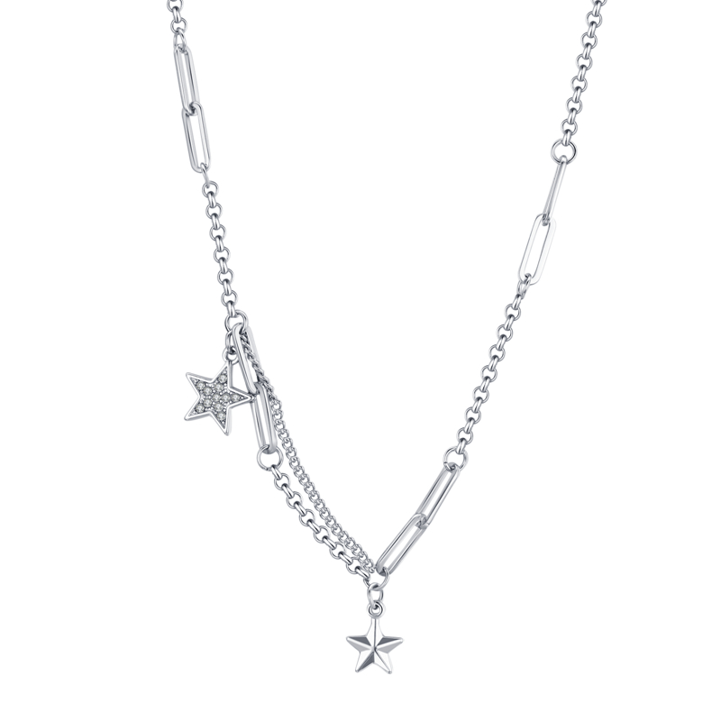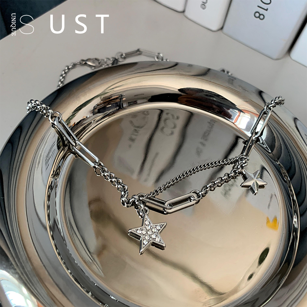 日韩五角星星镶钻钛钢拼接项链淑女温柔风颈链锁骨链 ins冷淡风