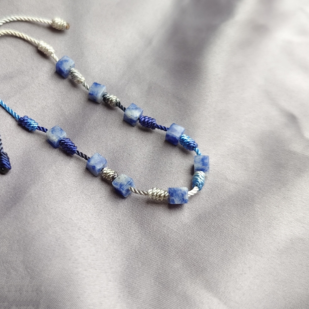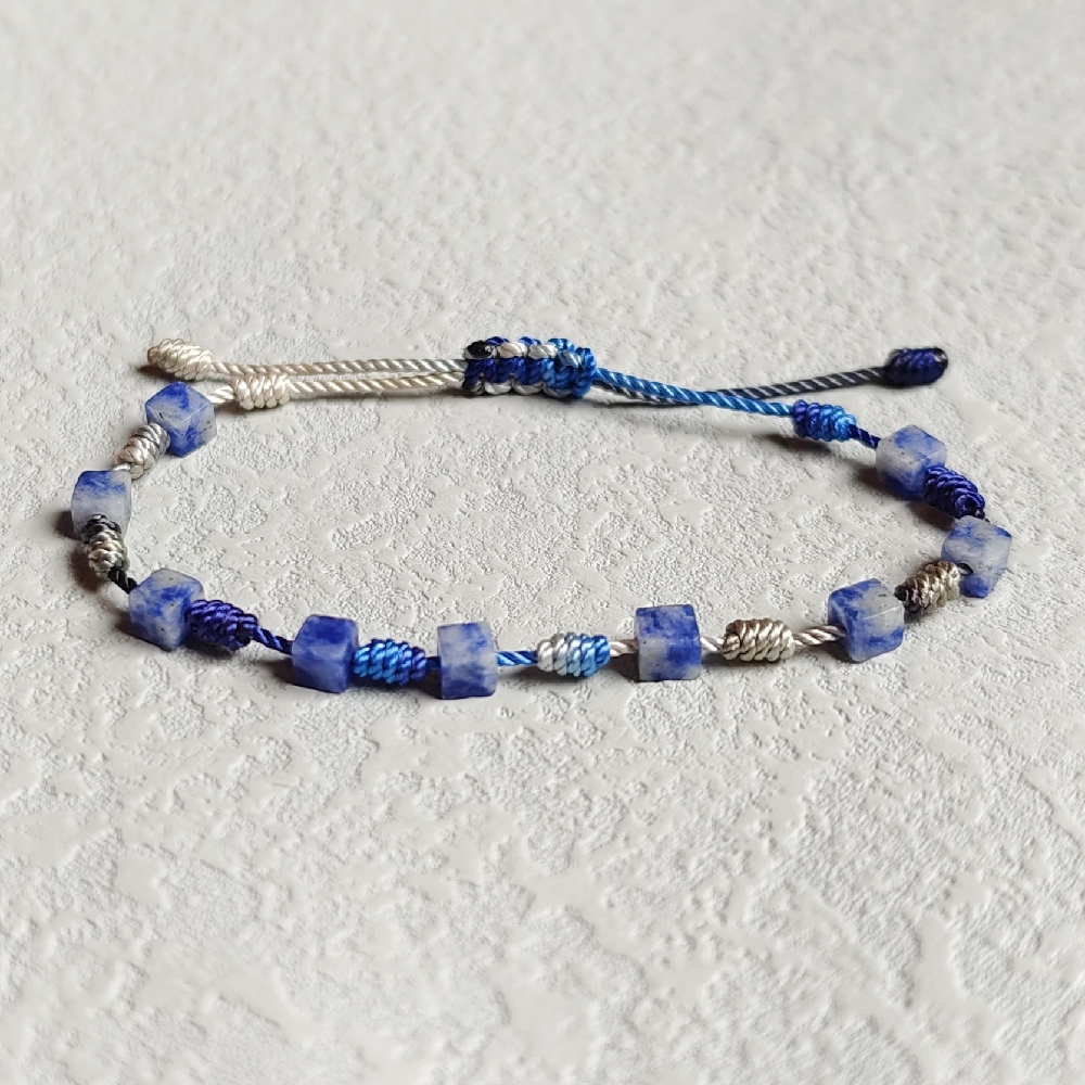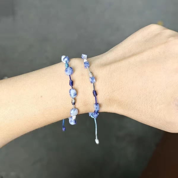 复古蓝点石4mm小方珠编织蓝色手链男女情侣手饰闺蜜礼物小众设计