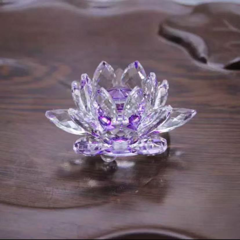 单只-轻奢水晶紫色小莲花水晶摆件莲花装饰
