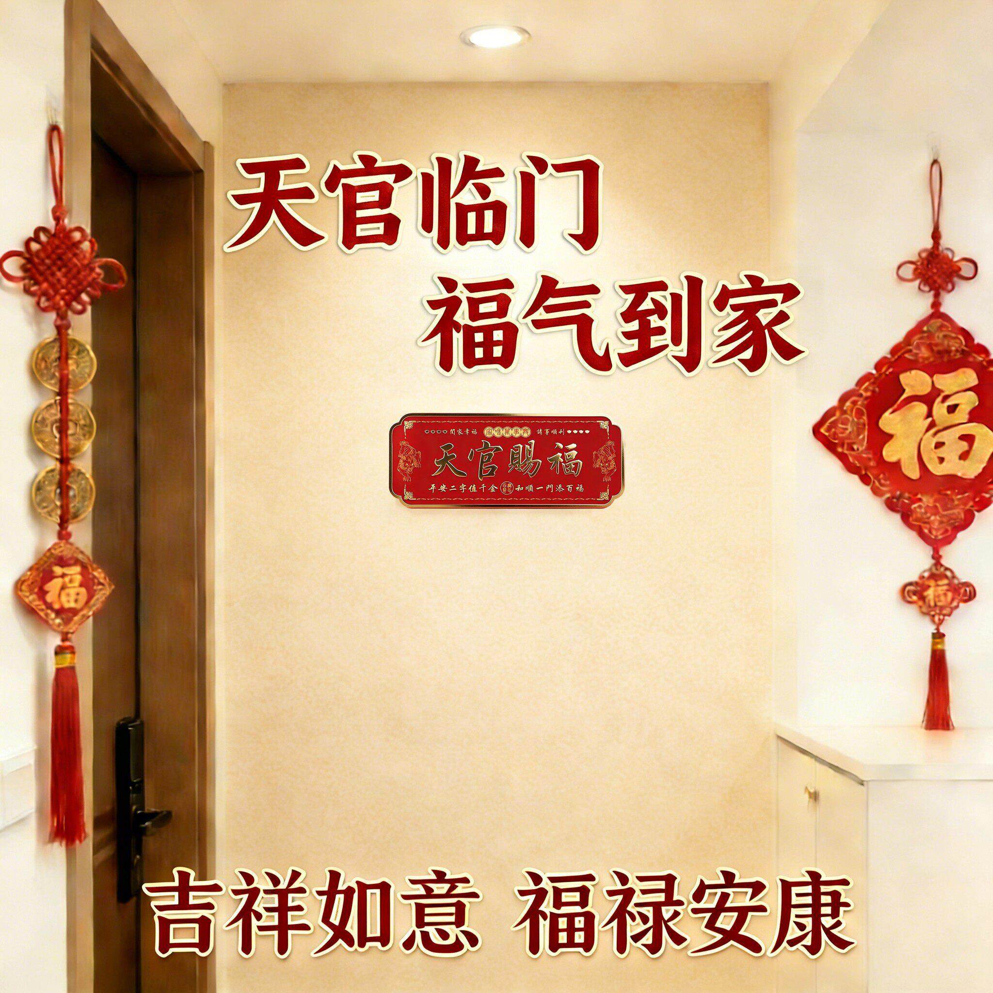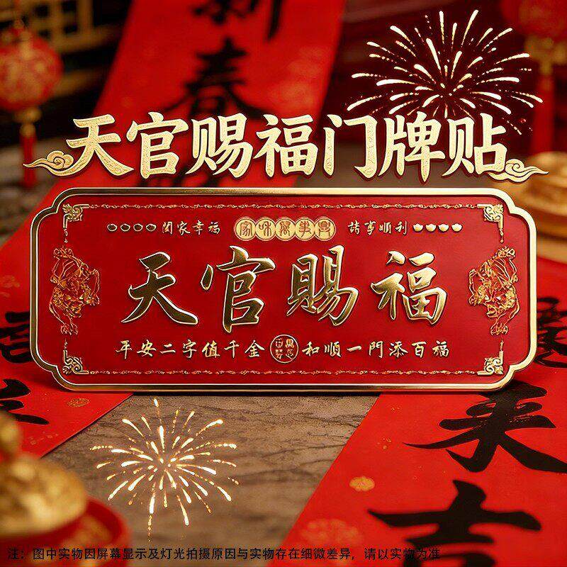 貔貅天官赐福门贴镇宅入户门横幅金属门牌中国风红色乔迁新春装饰