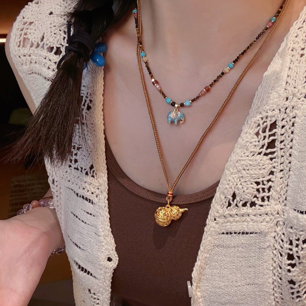 老铺同款镂空花丝葫芦项链女高级感毛衣链秋冬长款百搭小众设计
