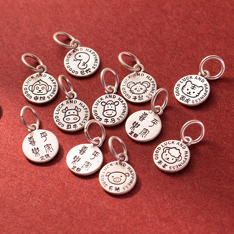 999足银平安喜乐十二生肖吊坠手串项链挂件手工diy编绳材料配件