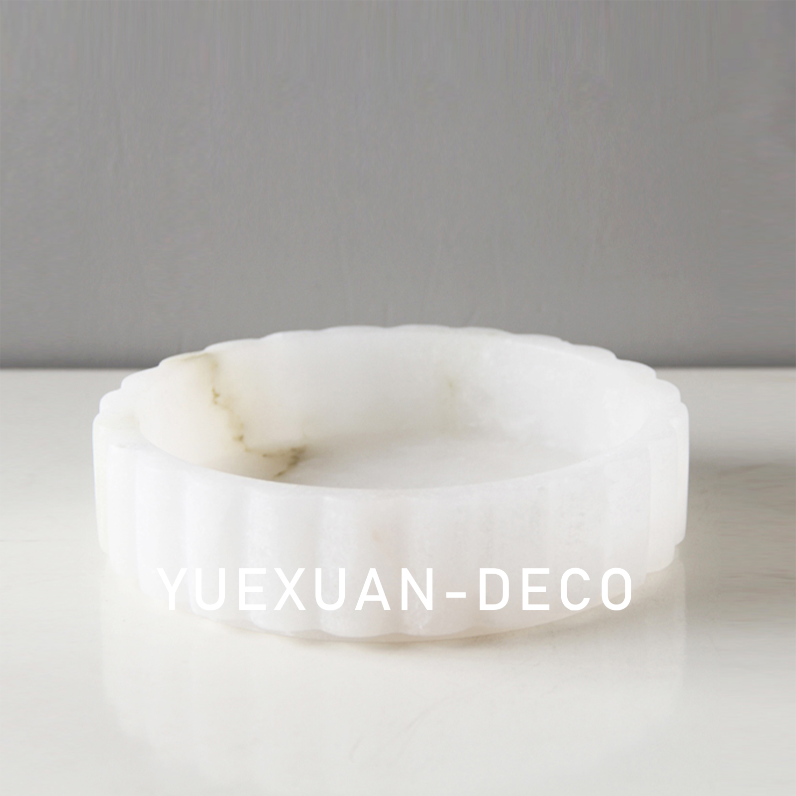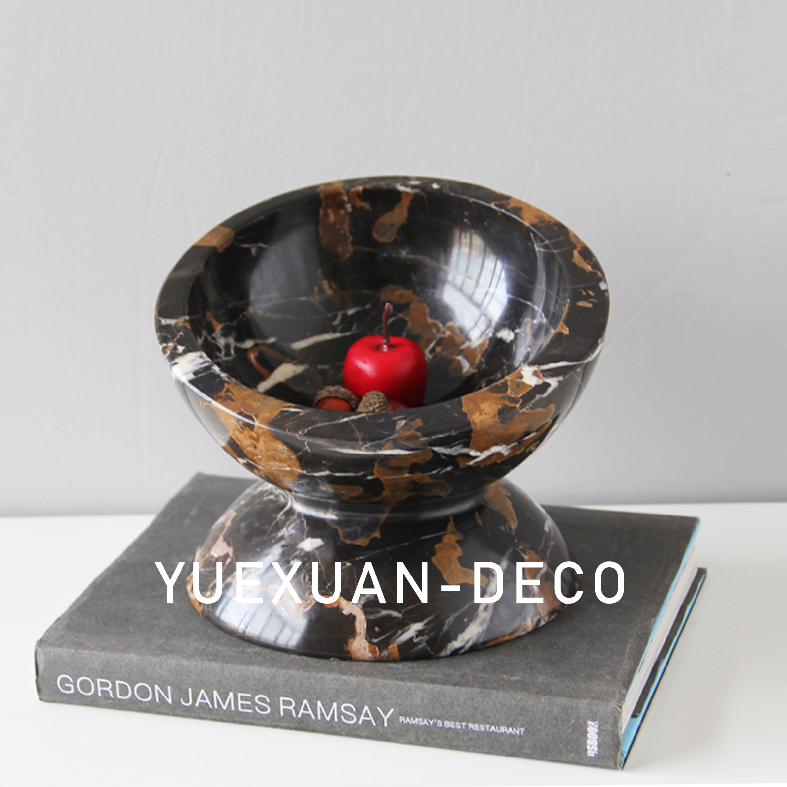 粤萱简约现代大理石云石果盘摆件售楼处样板间酒店餐桌茶几软装