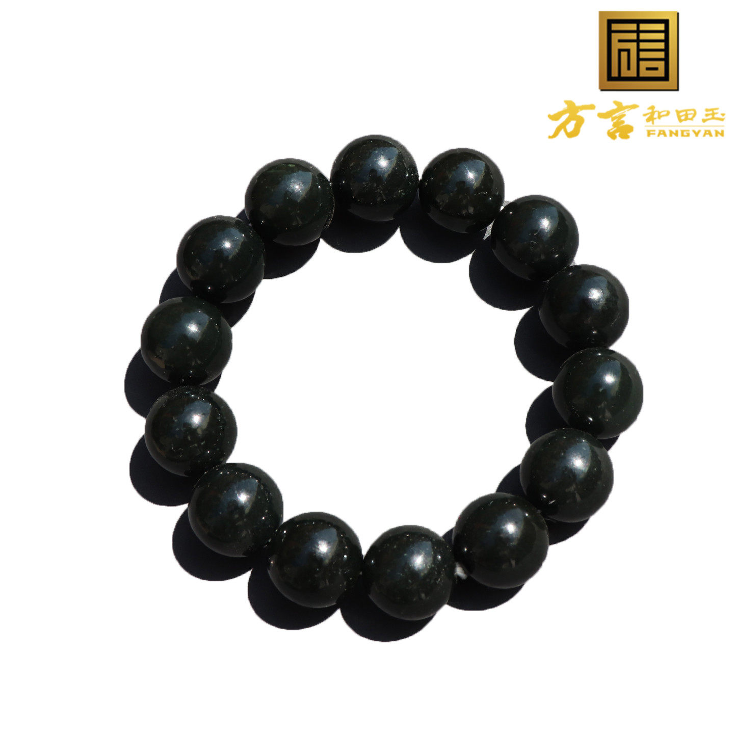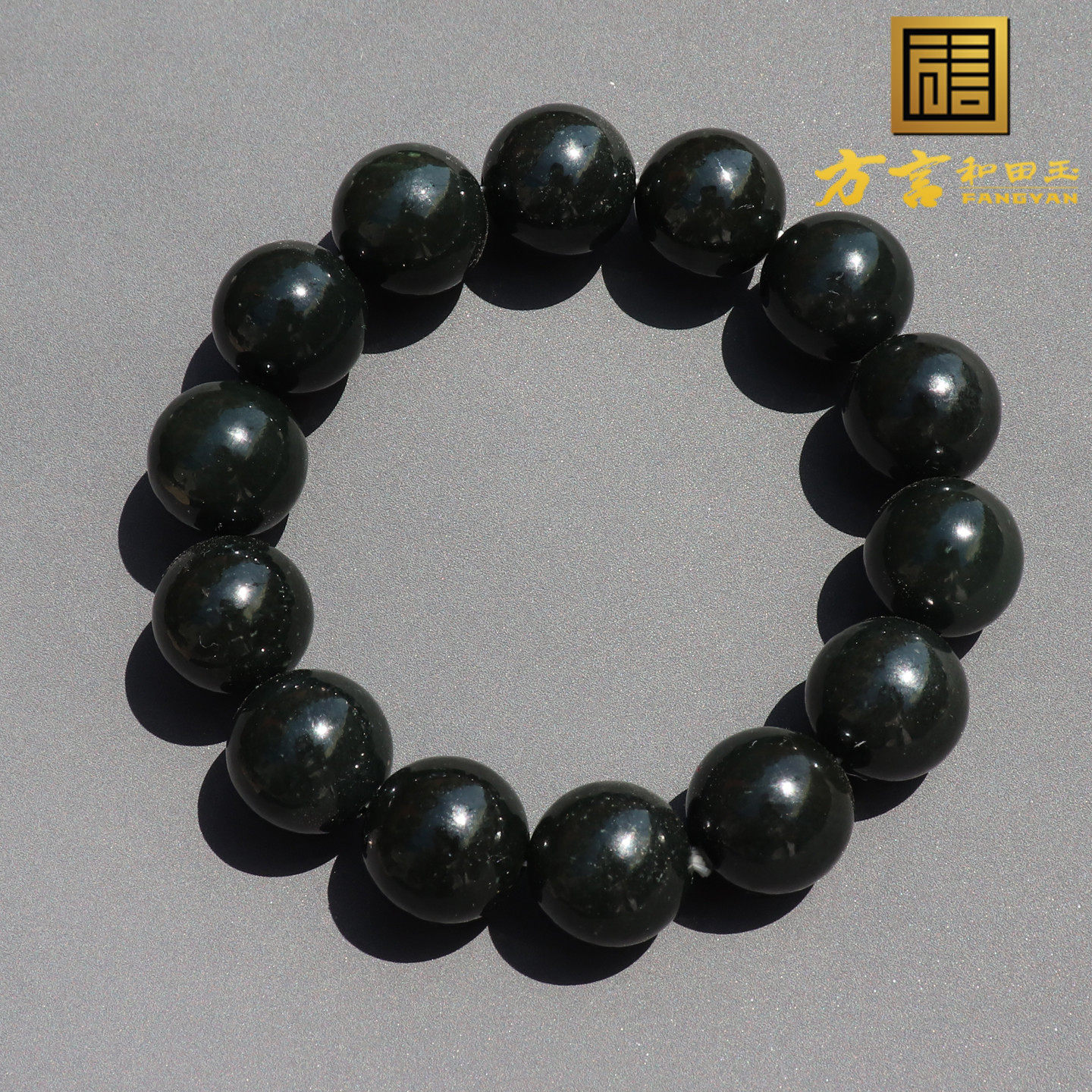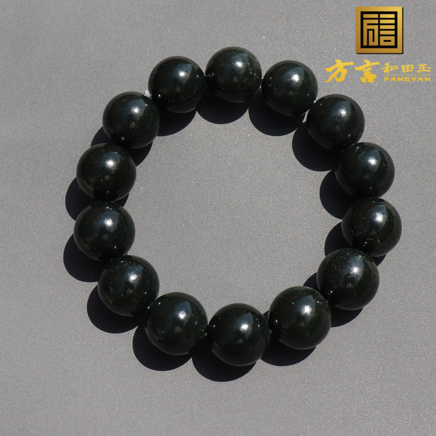 亏麻了方言和田玉精品佩戴油润细腻新疆塔县黑青玉16mm圆珠手串A8