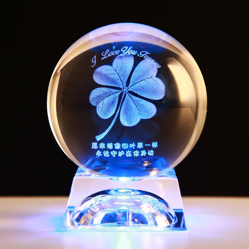 生日礼物发光水晶玻璃球3D内雕麋鹿情人节送男友女友同学闺蜜礼品