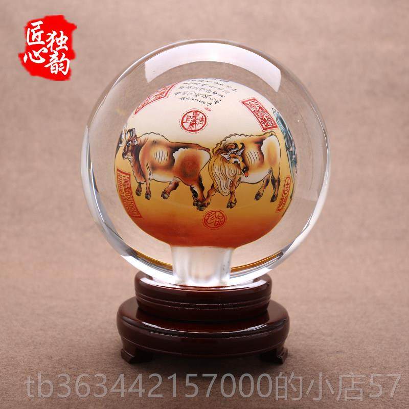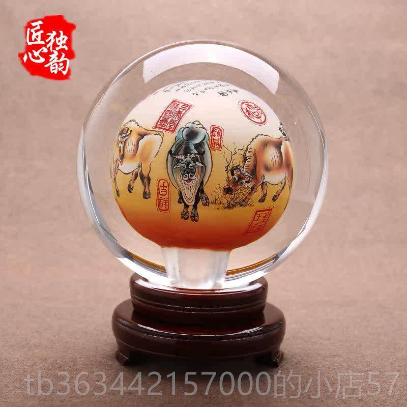 高档五牛件图牛年摆意礼品色中国创风内画球送领导特办公室桌面
