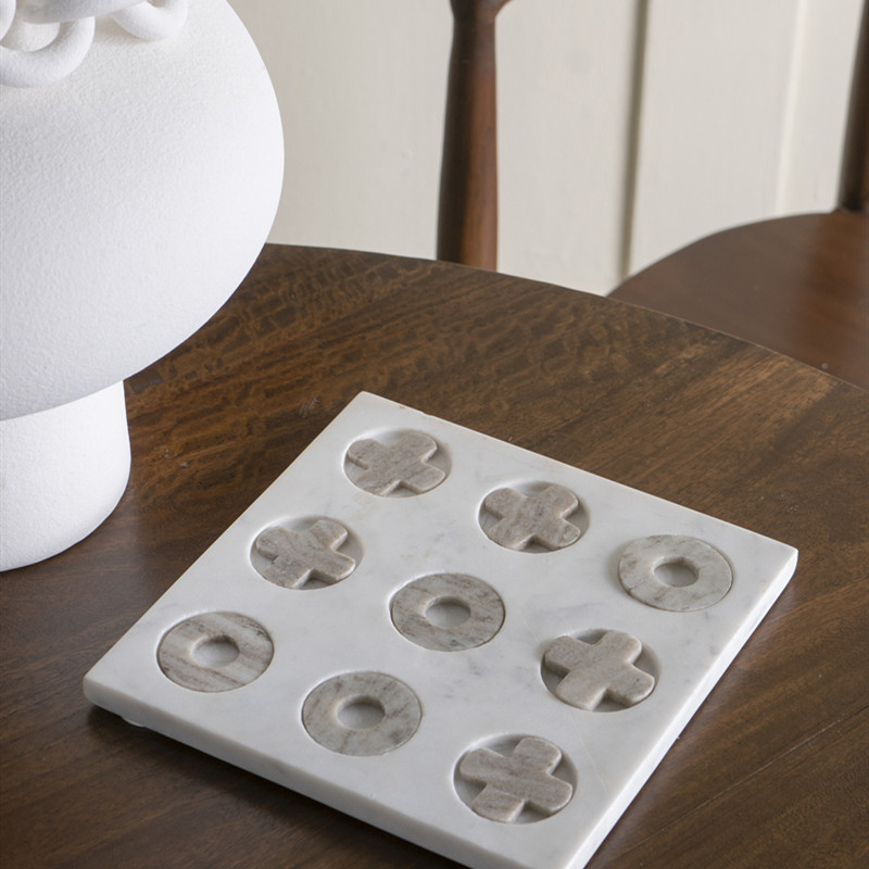 简约大理石实木棋盘桌面摆件办公室样板间客厅书房家居软装饰品