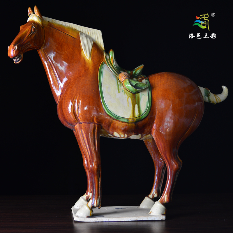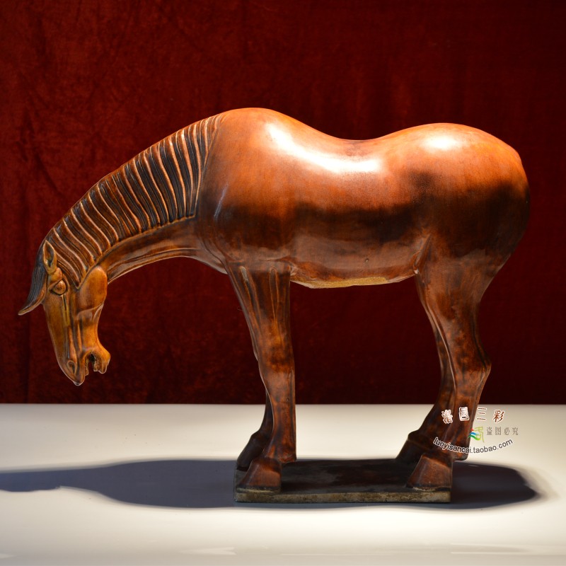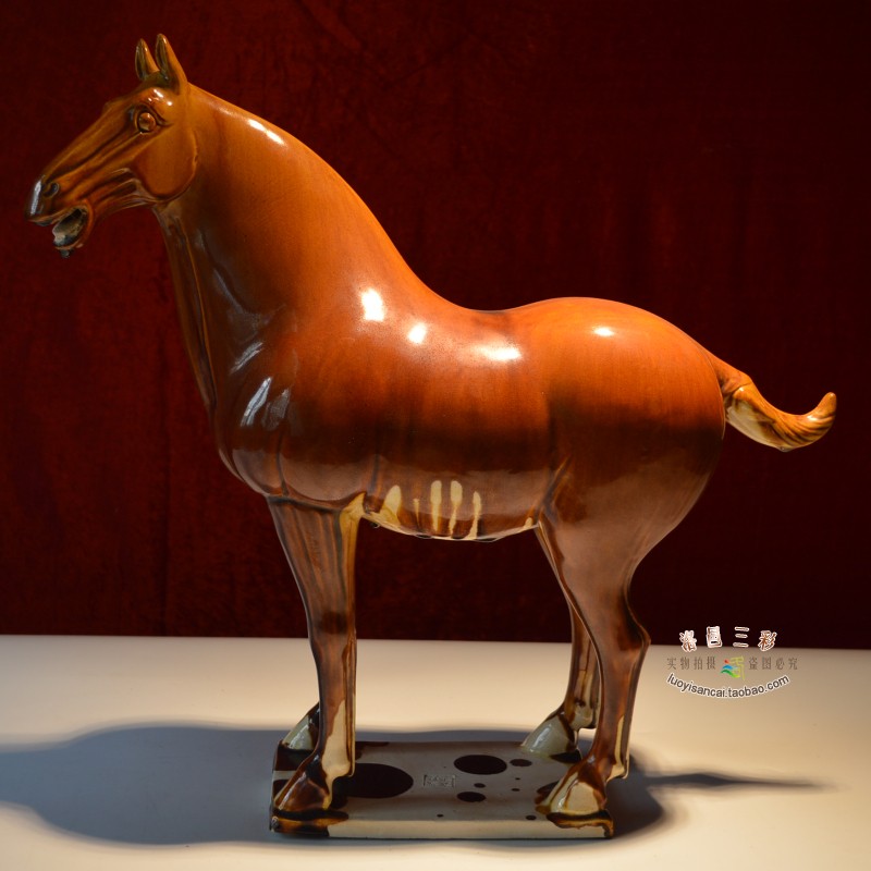 大师仿古唐三彩枣红汗血马中式玄关古董收藏桌面大摆件贵重礼品