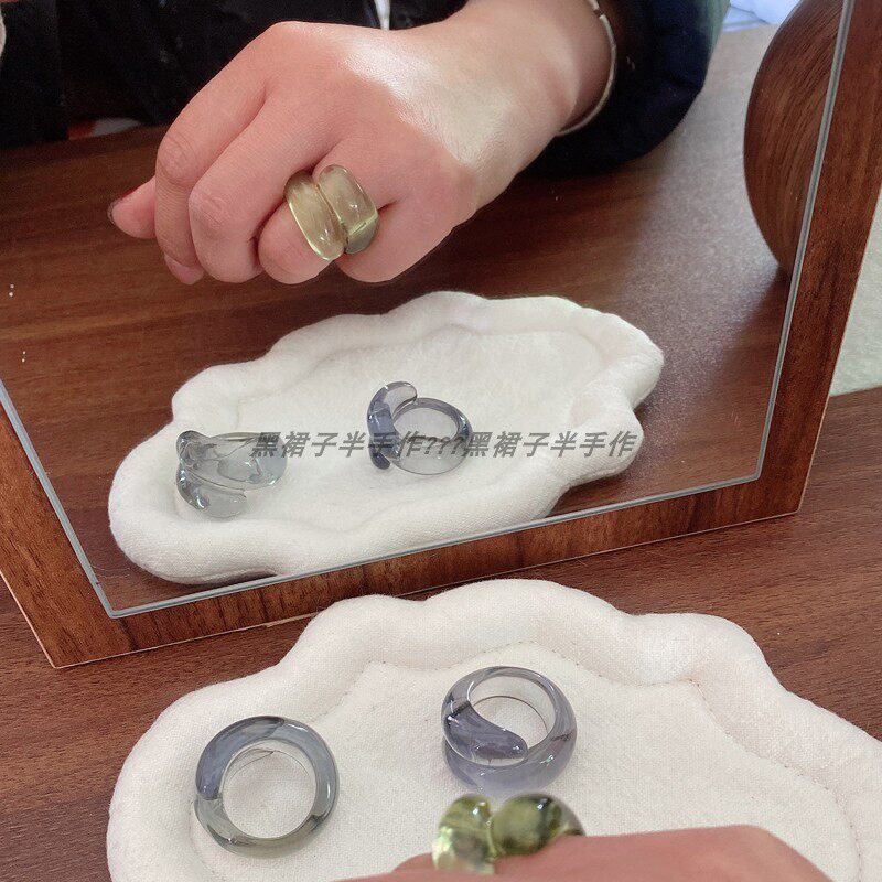 日杂风树脂戒指透色夸张设计感透绿色灰紫色闭口戒环日系订单剩余