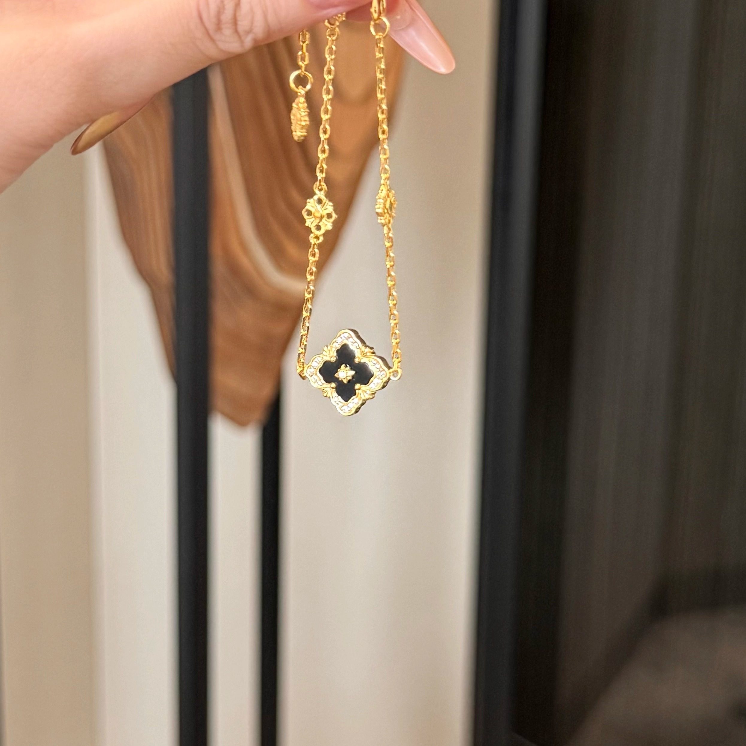 古法手串手链足金999水贝黄金布契满钻单片黑色手链2025新款送礼