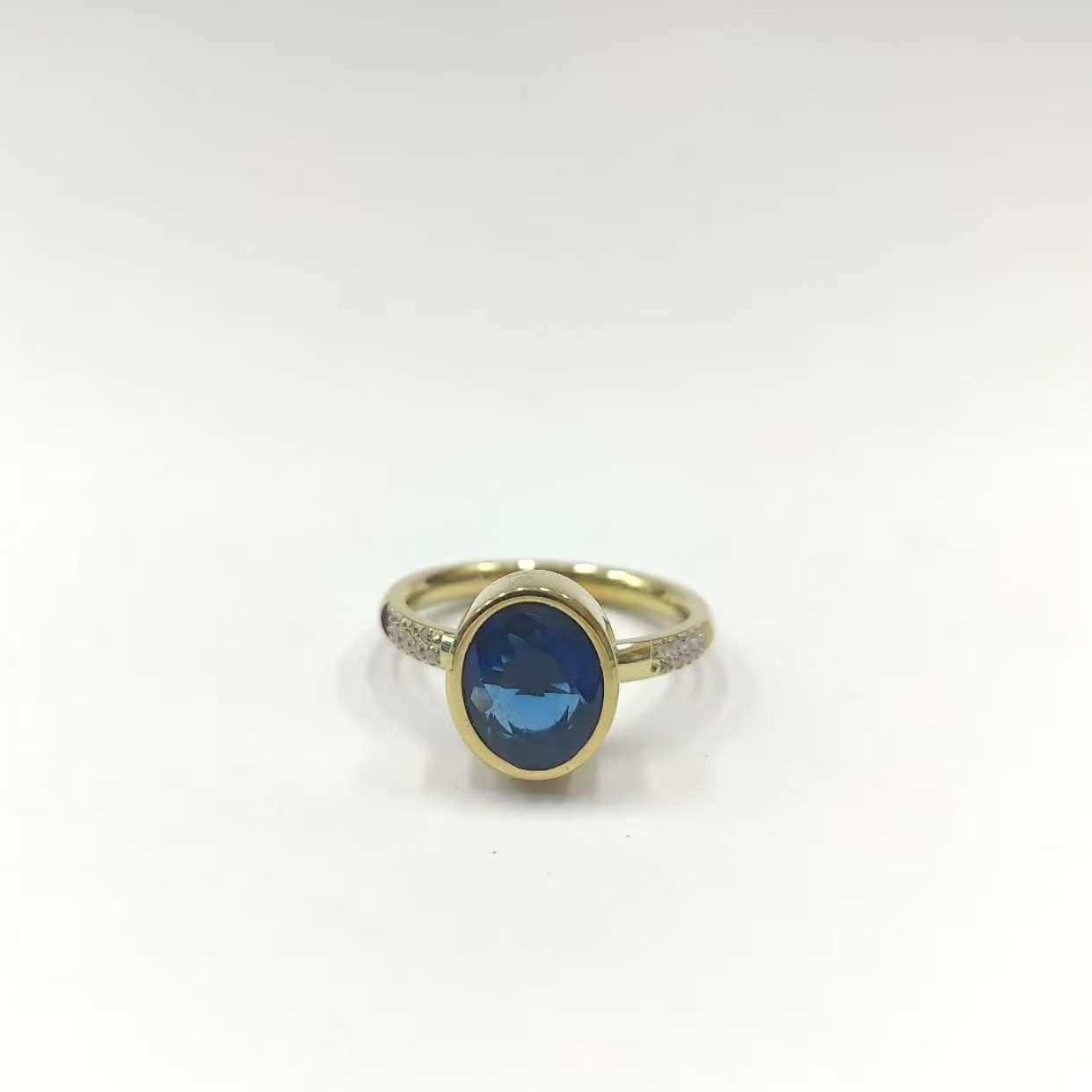 钛钢+合成立方氧化锆 XC蓝色椭圆戒指ZB3028