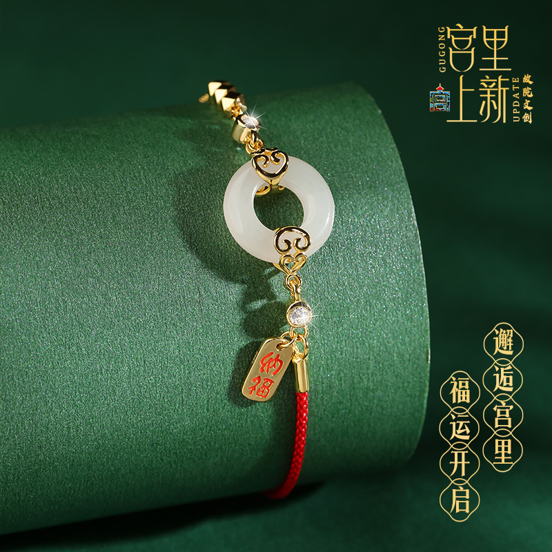 宫里上新和田玉平安扣手链女生纯银红手绳本命年转运生日送妈妈