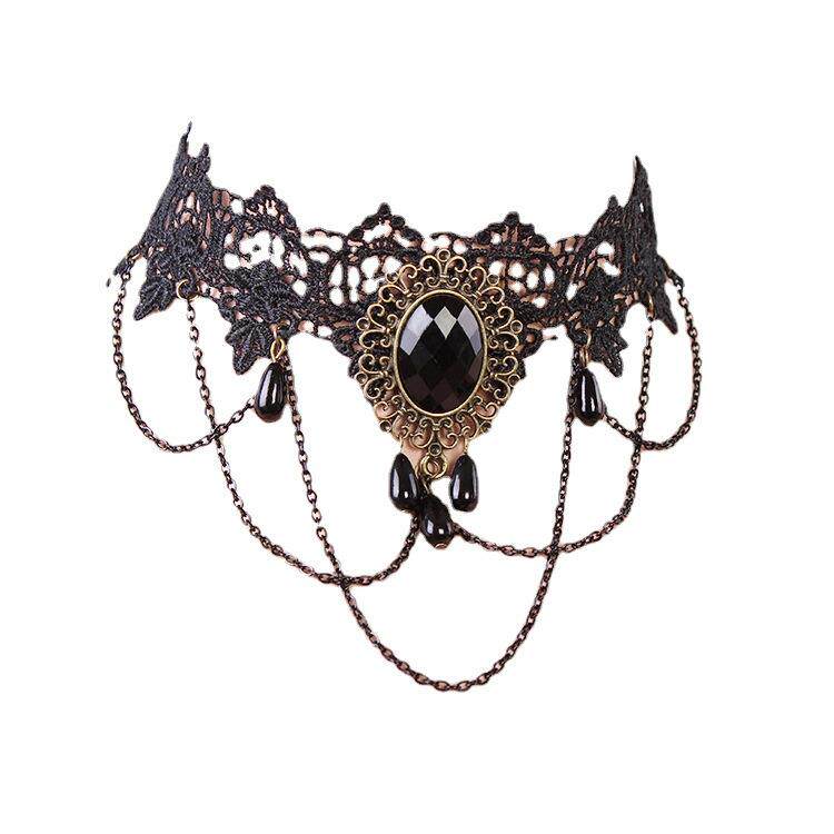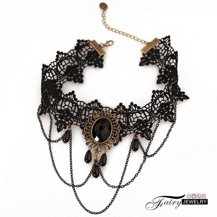 欧美夸张时尚黑色蕾丝颈链短款项链锁骨链女假领子厂家批发GY128