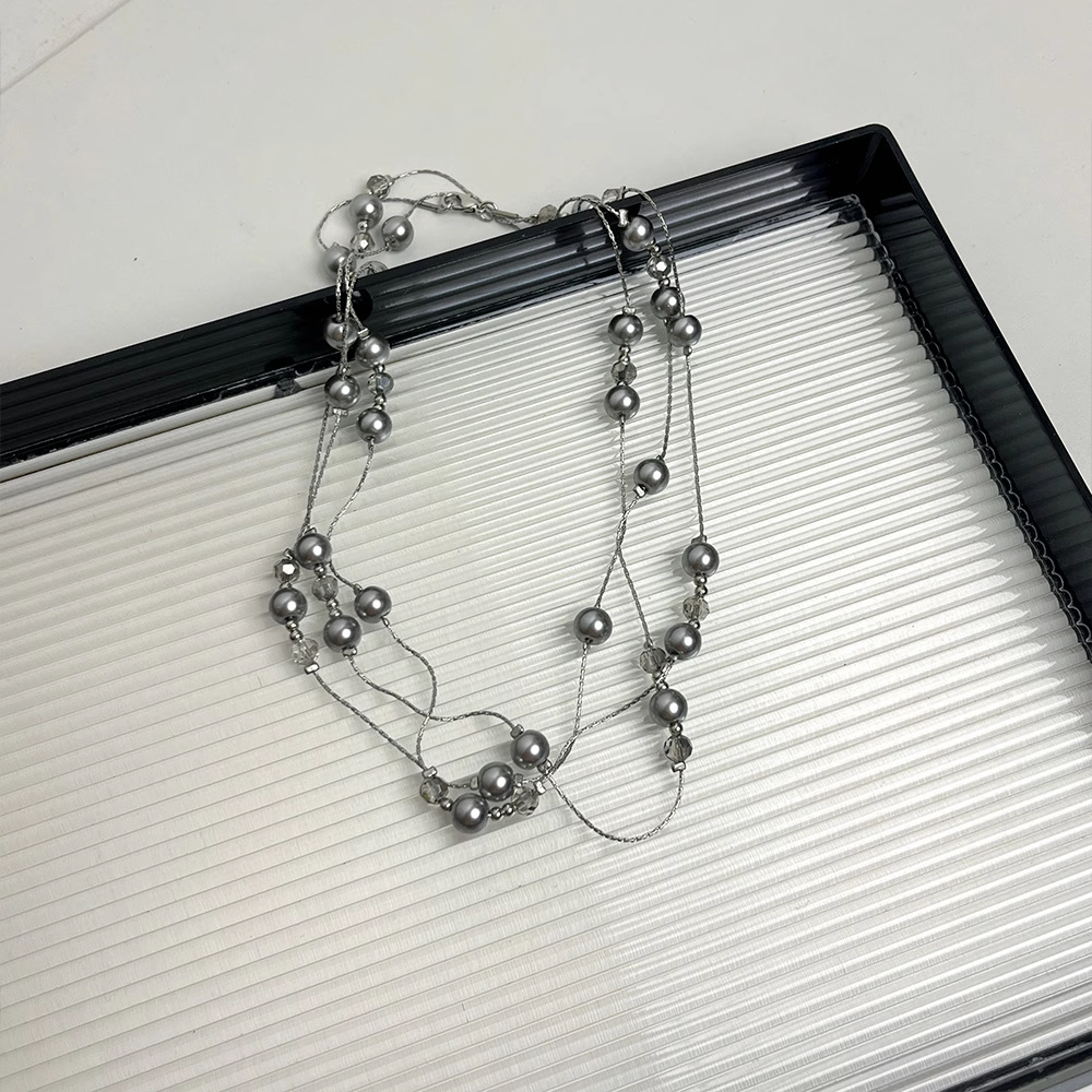 高级感多层灰色仿珍珠项链女长款多戴法毛衣链小众设计锁骨链配饰