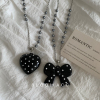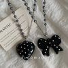 韩国甜酷白色波点蝴蝶结吊坠项链小众设计感毛衣链个性百搭配饰链