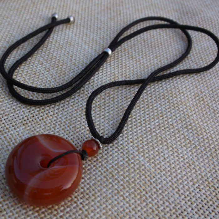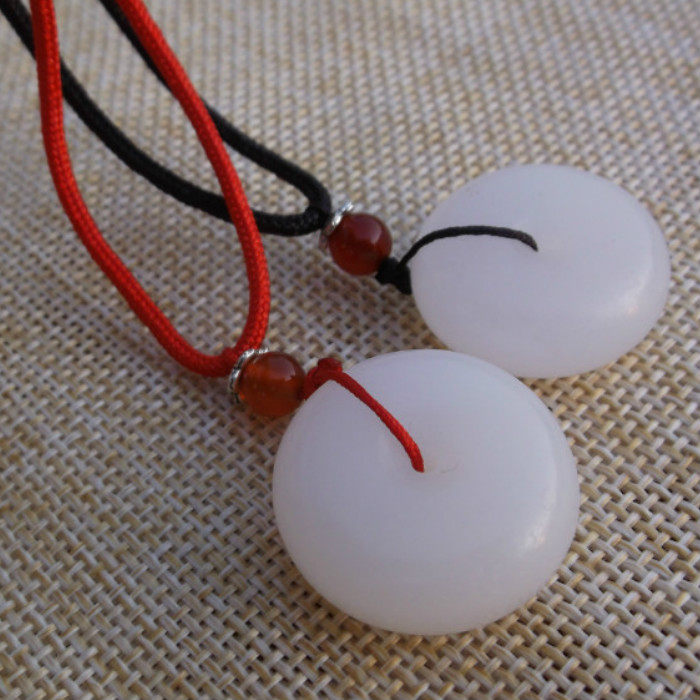 平安扣项链男女怀古挂件项坠白玉扣缠丝红玛瑙玉环可调节项链玉坠