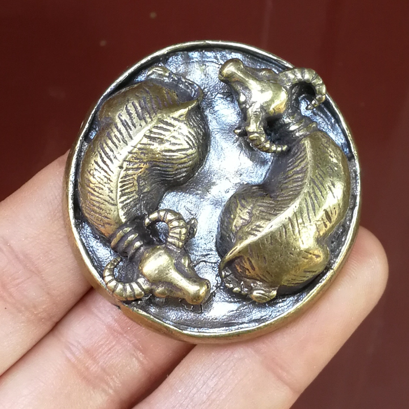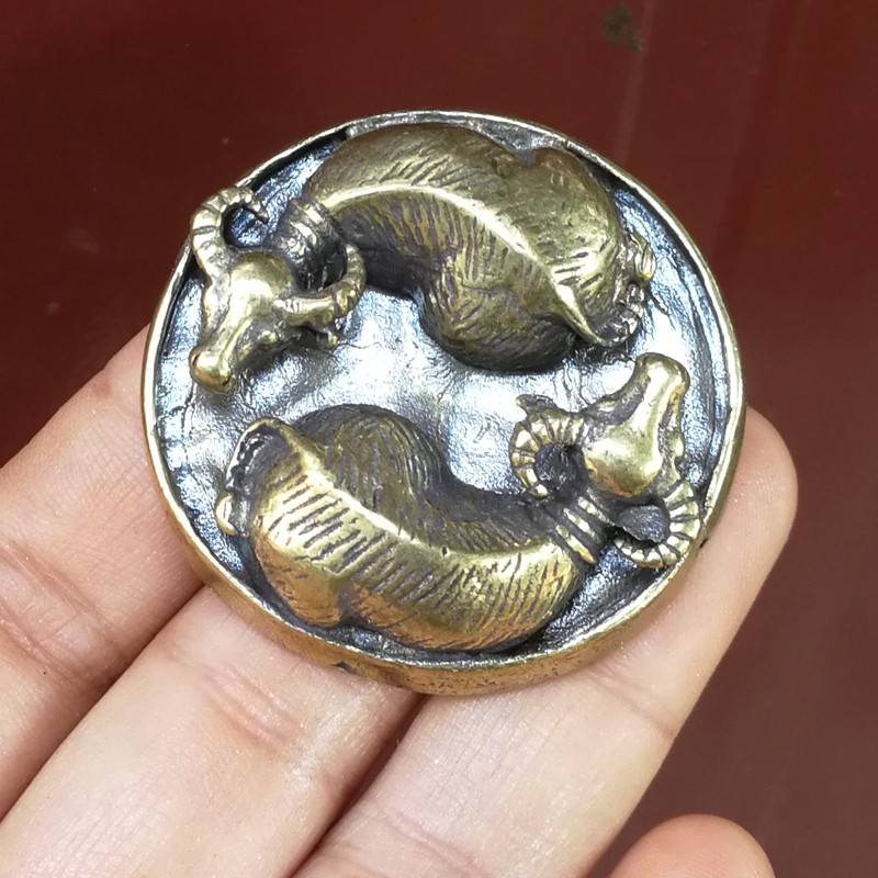 太极八卦图牛转乾坤铜摆件古玩铜器转运纯铜把件镇纸茶宠收藏古董