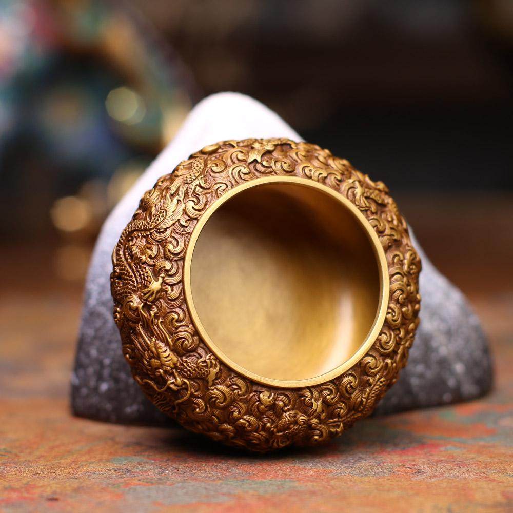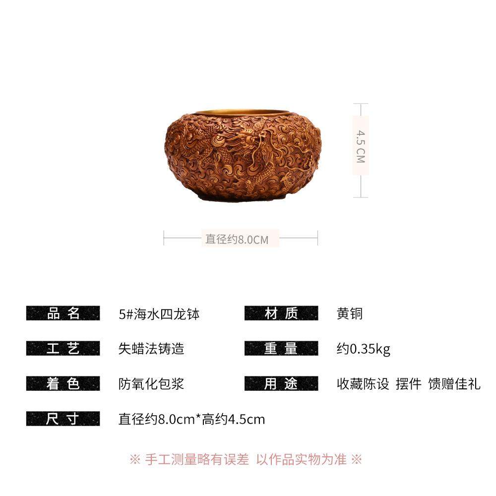 5#海水四龙钵黄铜居家玄关办公室书房摆件礼品铜工艺品