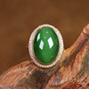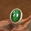 618特惠老料和田玉戒指女满钻菠菜绿碧玉蛋面镶嵌18k金指环送老婆