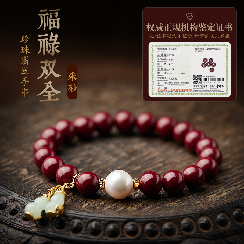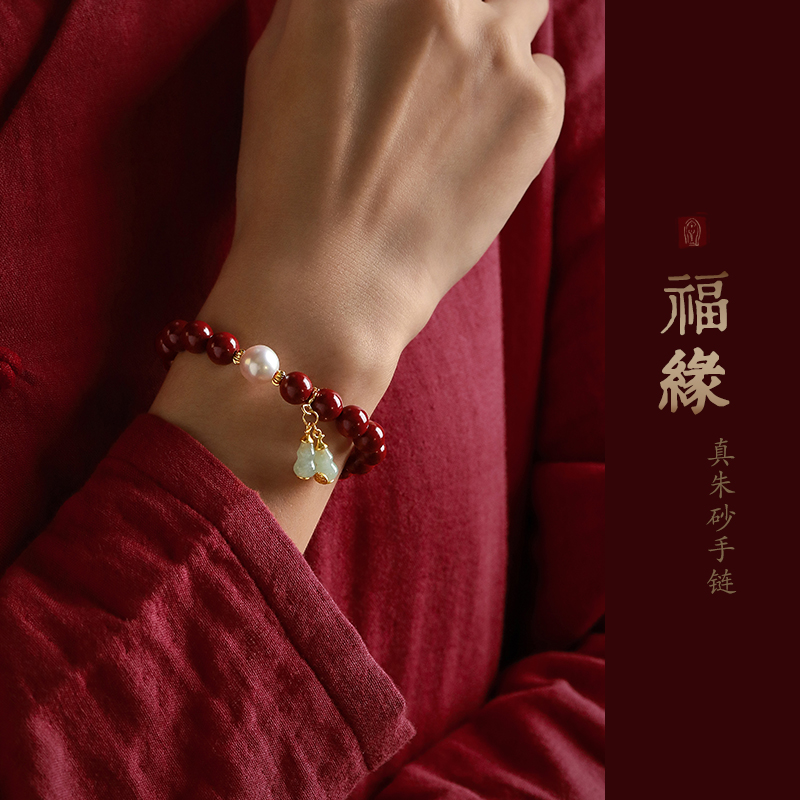 朱砂手串女生情人节礼物送女友手链翡翠玉葫芦珍珠佛珠念珠转运珠