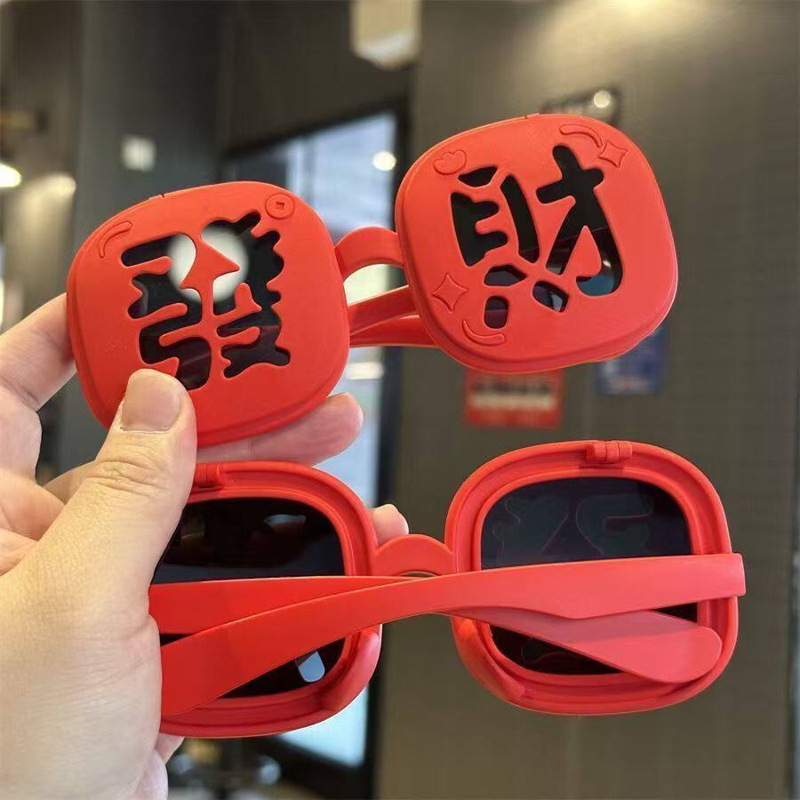 2026新年跨年会表演墨镜红色发财眼镜生日派对搞怪拍照道具男女童