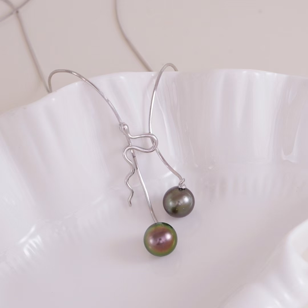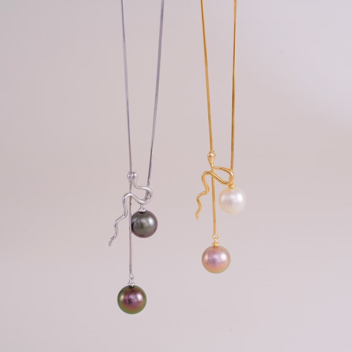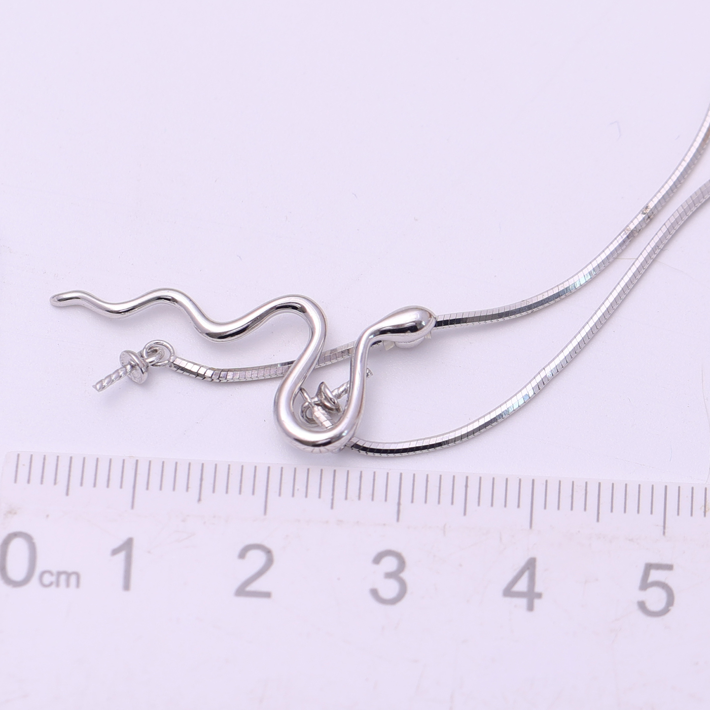 s925纯银项链配件珍珠饰品diy手工制作蛇形蛇骨链双珠吊坠链空托