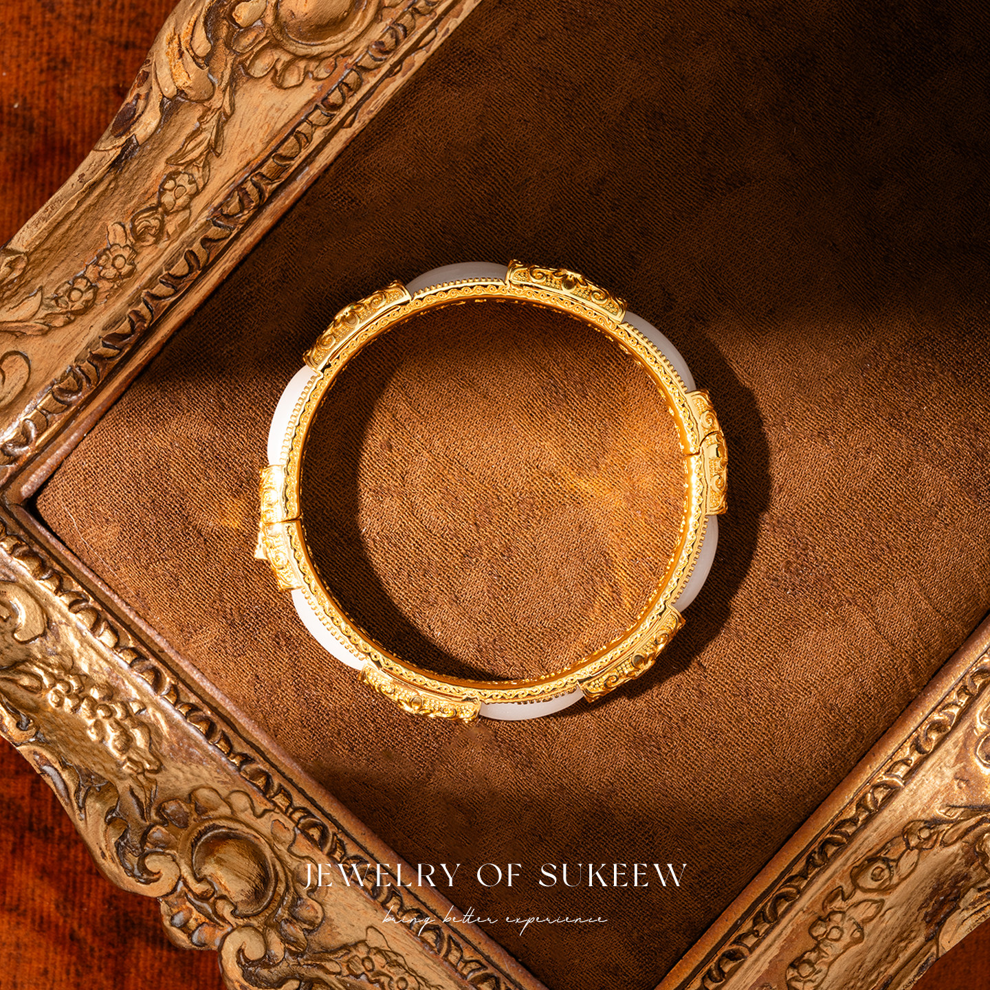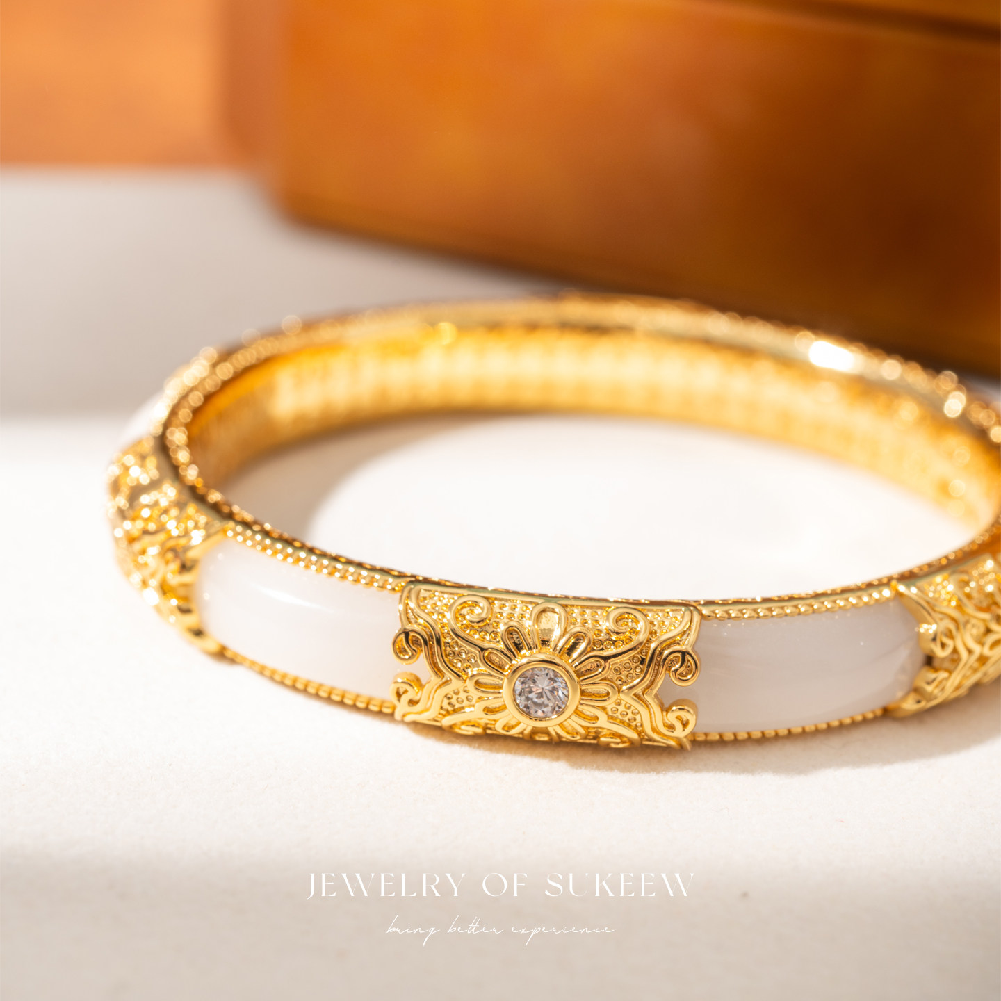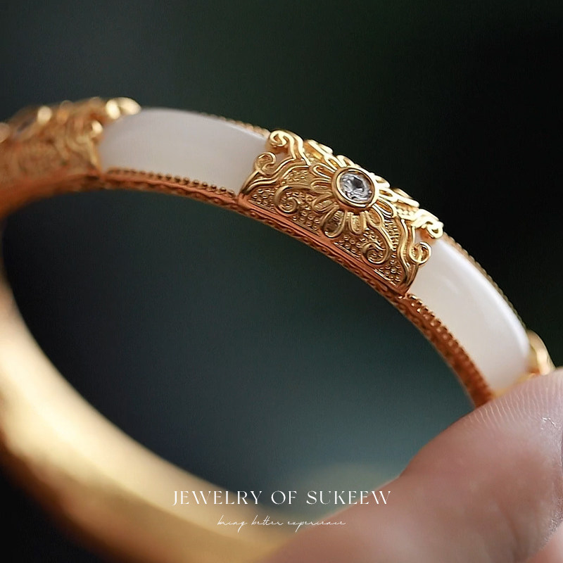 SUKEEW/酥可 「金玉良缘」国风优雅新中式雕花嵌玉古典活口开口镯