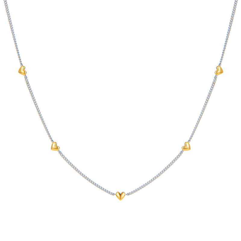VOGUEWANG原创高级感镀纯银镀18K白金银色双生双色满天星爱心项链