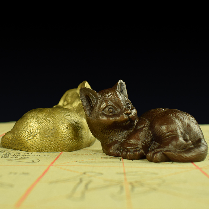 黄铜紫铜实心可爱小猫办公室书房客厅桌面摆件猫咪文房镇纸笔架