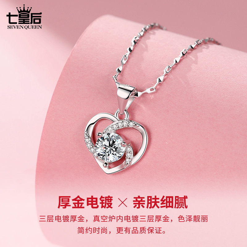 足银爱心锆石项链女夏锁骨链2025年新款潮镂空吊坠轻奢小众设计感
