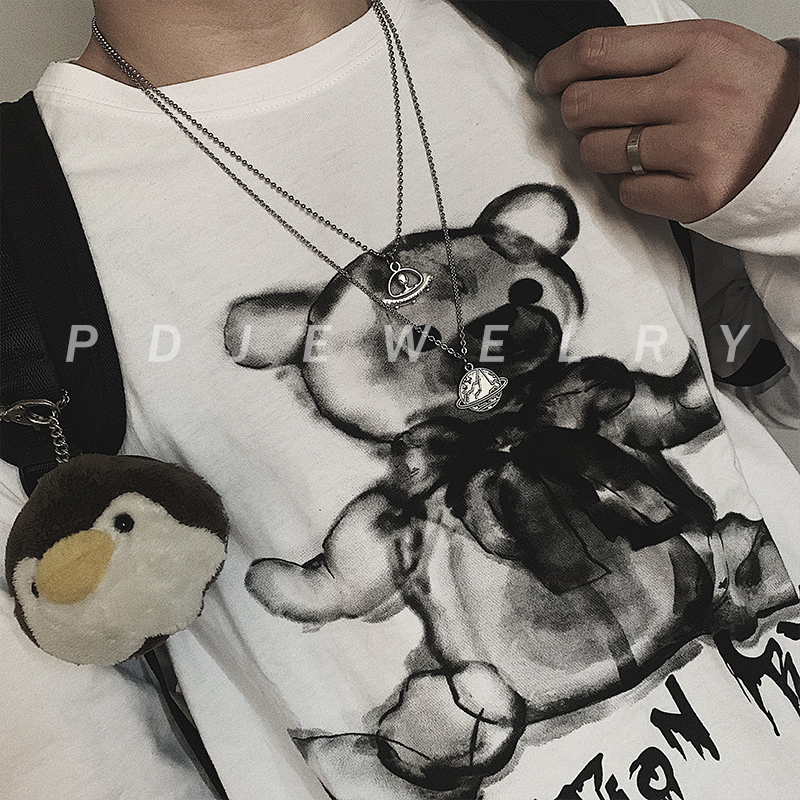 PDSTYLE自制 神秘星球圆牌毛衣链嘻哈土酷情侣项链男女ins吊坠潮