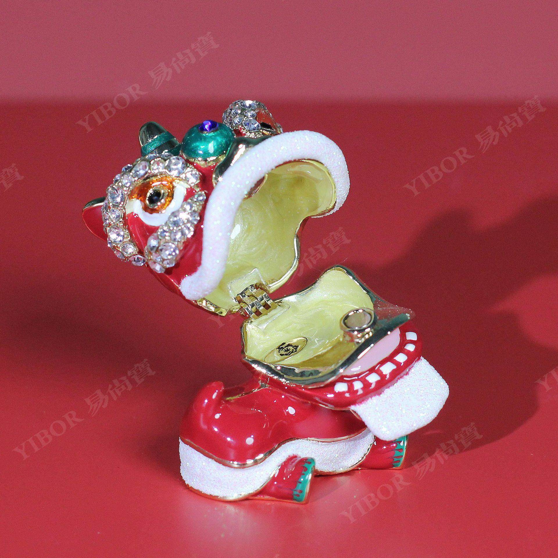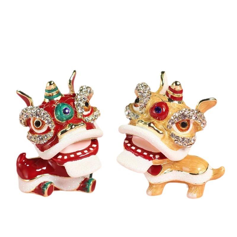 高端珐琅首饰盒品牌手工艺品中式传统舞狮吉祥物醒狮金属摆件