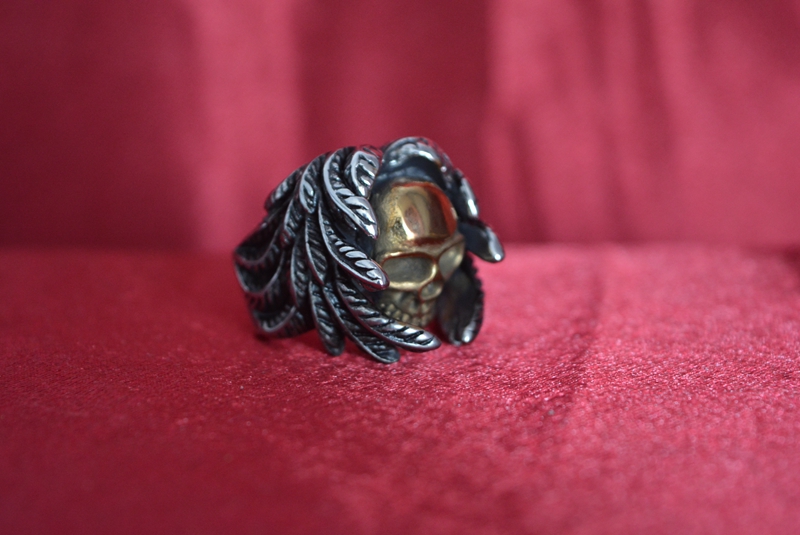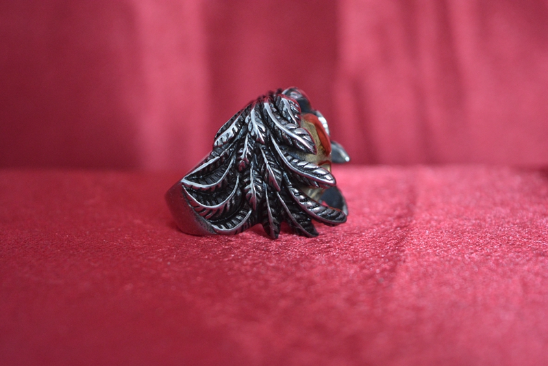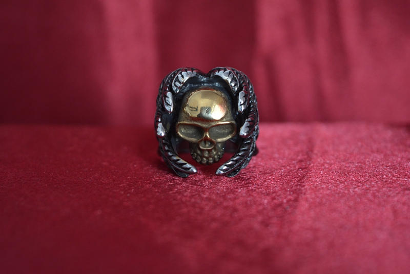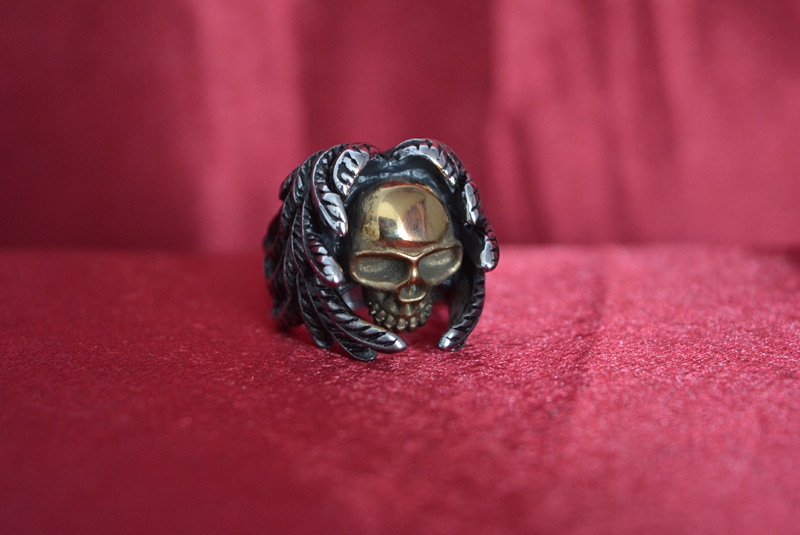 钛钢戒指男女通款个性鸟人镀金羽毛骷髅头首饰品情侣不锈钢指环