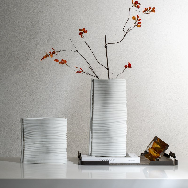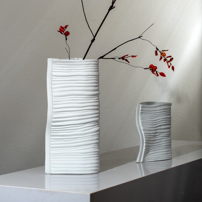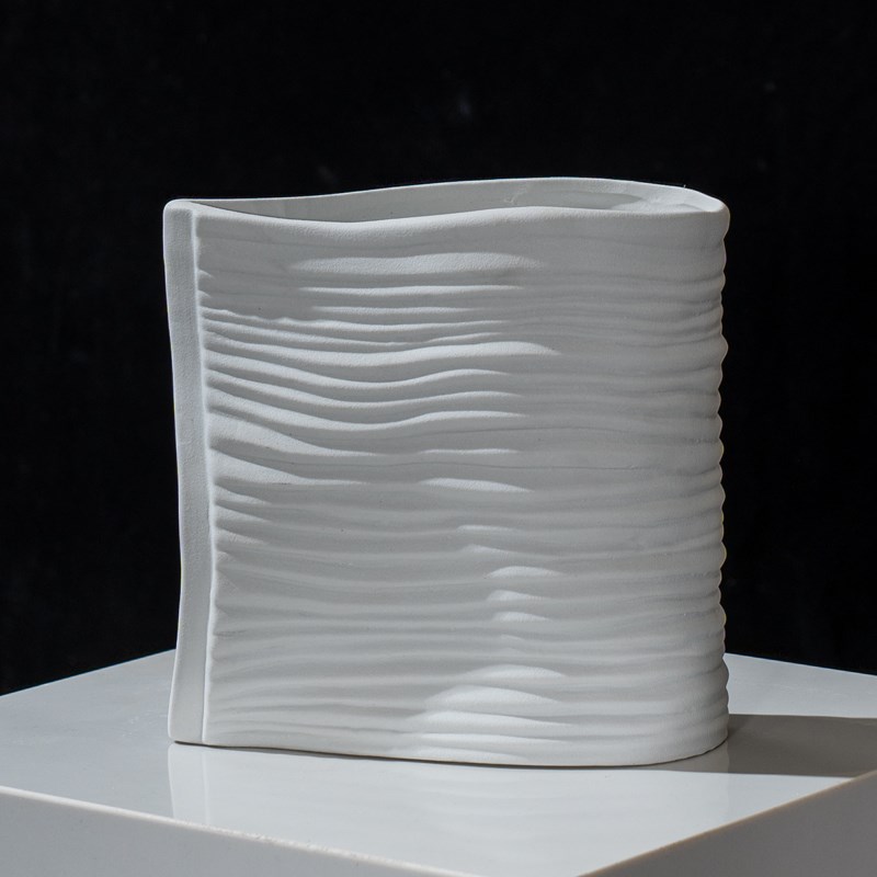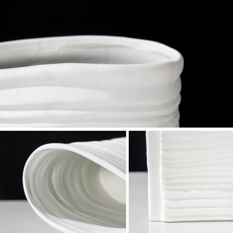 速发麦型 简约设计感肌理陶瓷异秋扁平花瓶 客厅干花摆装饰品器件