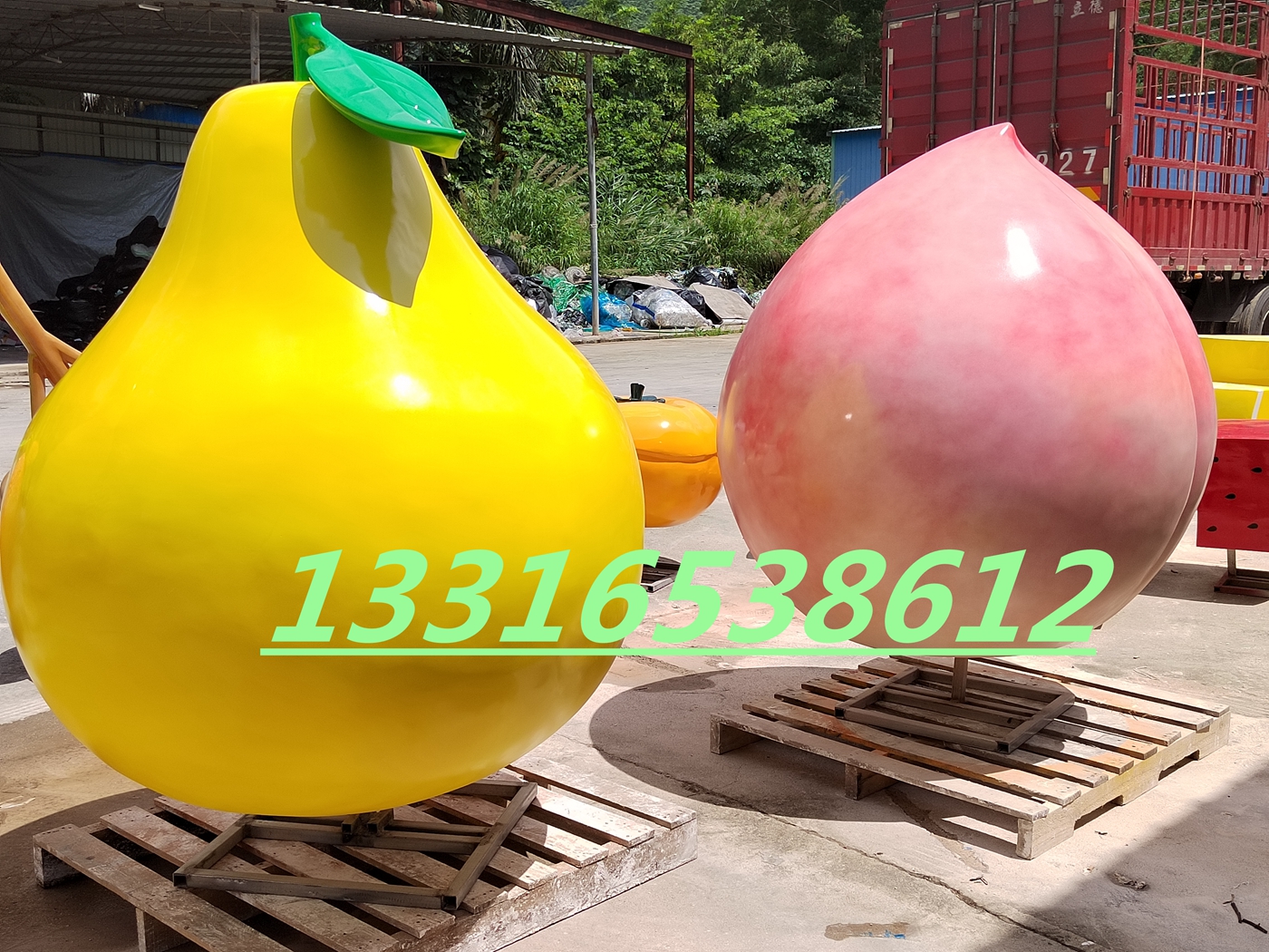 水蜜桃之乡雕塑定制景区地标大型水果IP吉祥物卡通娃娃公仔大摆件