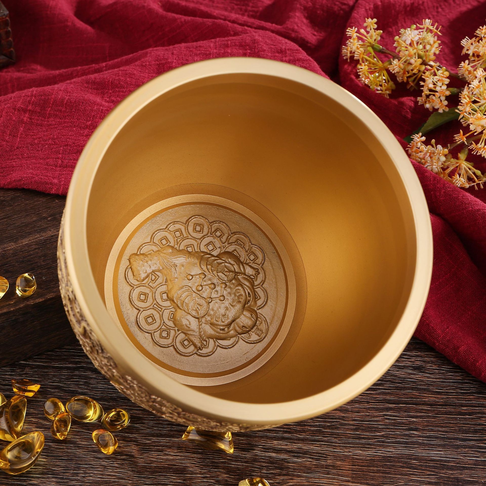 15cm龙凤呈祥米缸开业摆件五龙戏珠聚宝盆家居装饰乔迁送礼定制