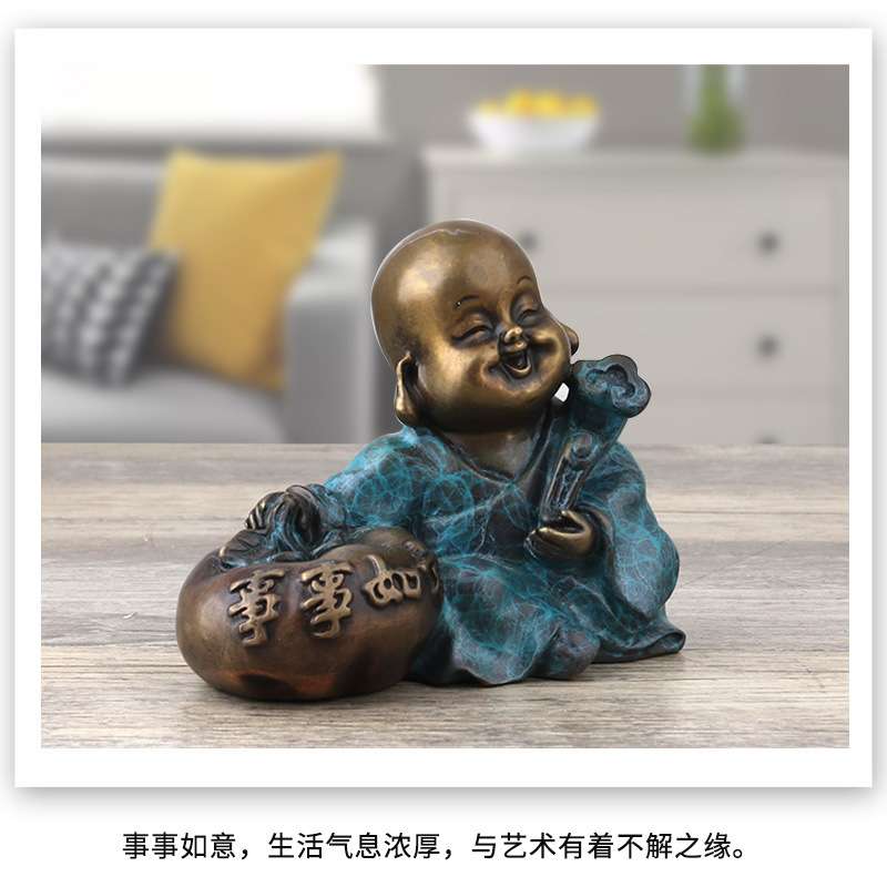 高温彩沙弥铜摆件创意禅意可爱小和尚家用茶几办公室茶具酒柜配件