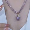 轻奢高级感紫色珍珠满钻叶子项链女小众设计感时尚气质百搭锁骨链
