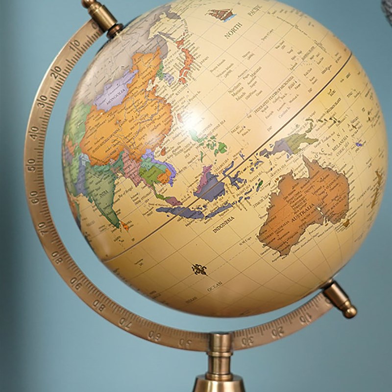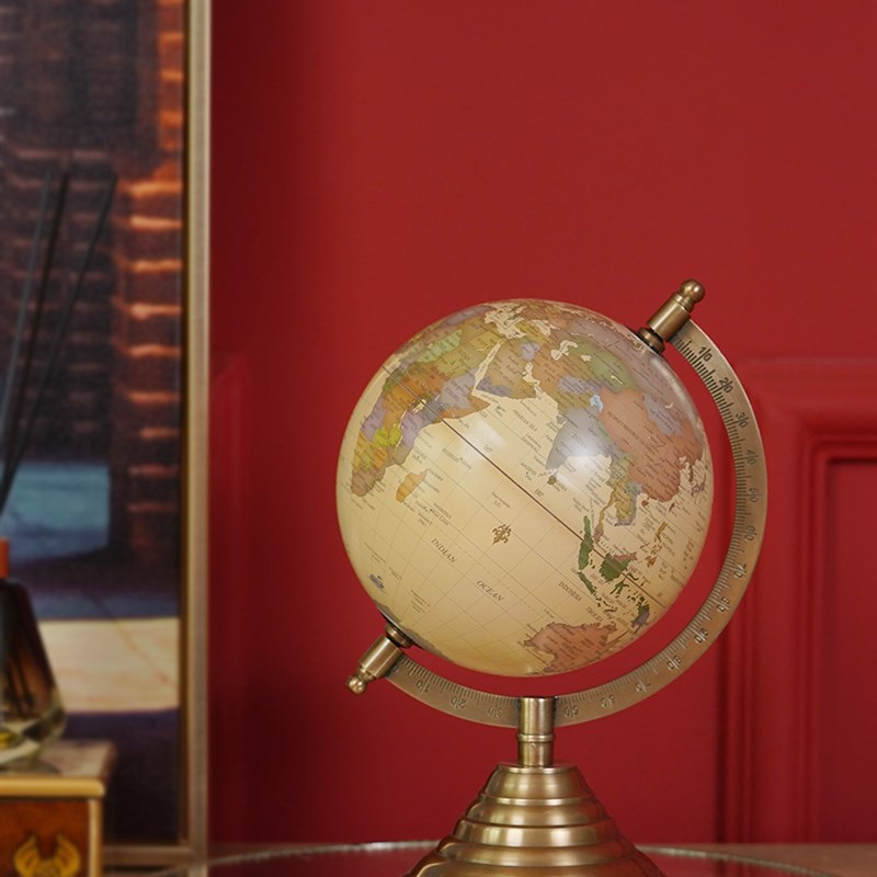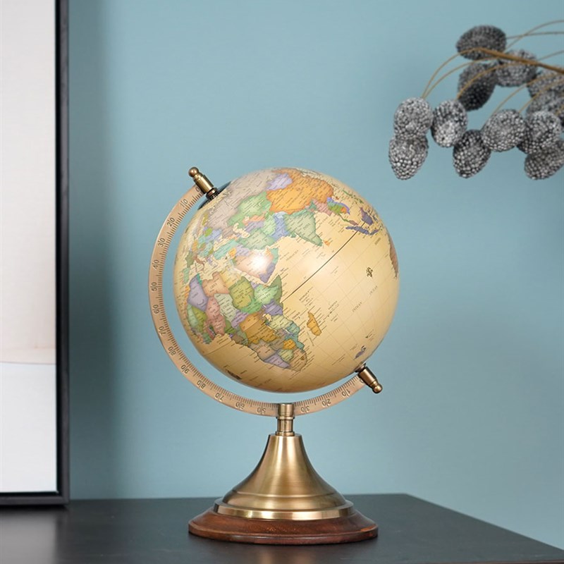 费灵家居印度进口手工实木黄铜地球仪摆件 家用样板间书房装饰品