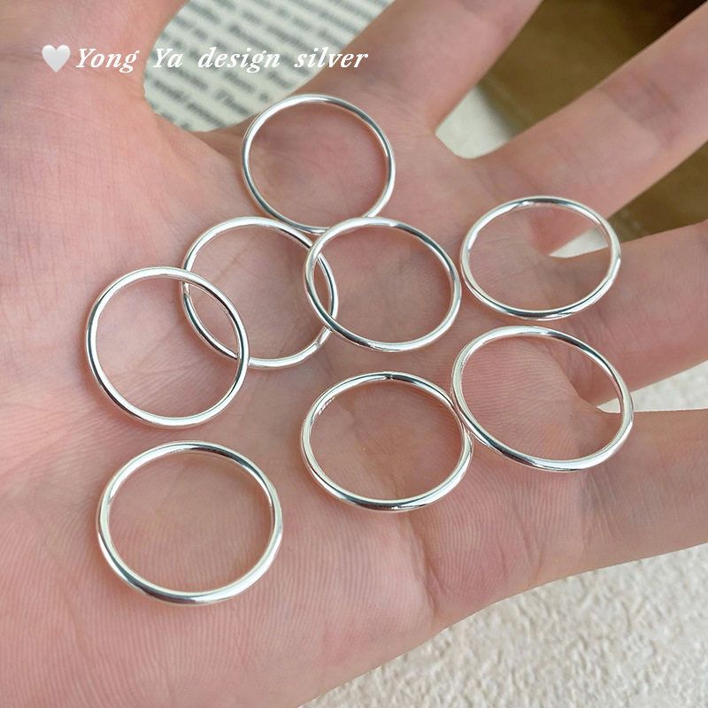 S999足银素圈戒指女基础款小众设计韩版轻奢精致高级指环时尚