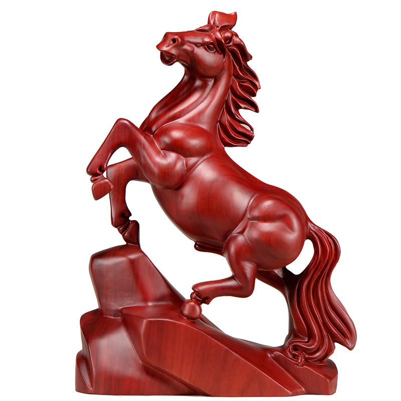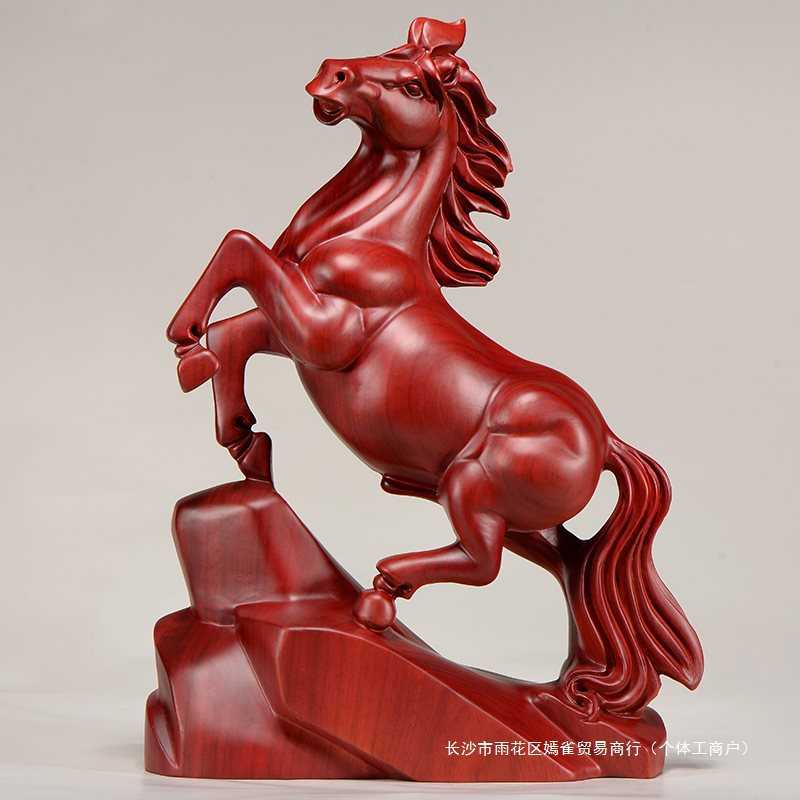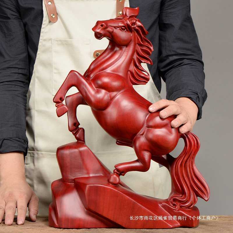 花梨实木雕刻马摆件木头根雕红色马到成功十二生肖家居装饰工艺品